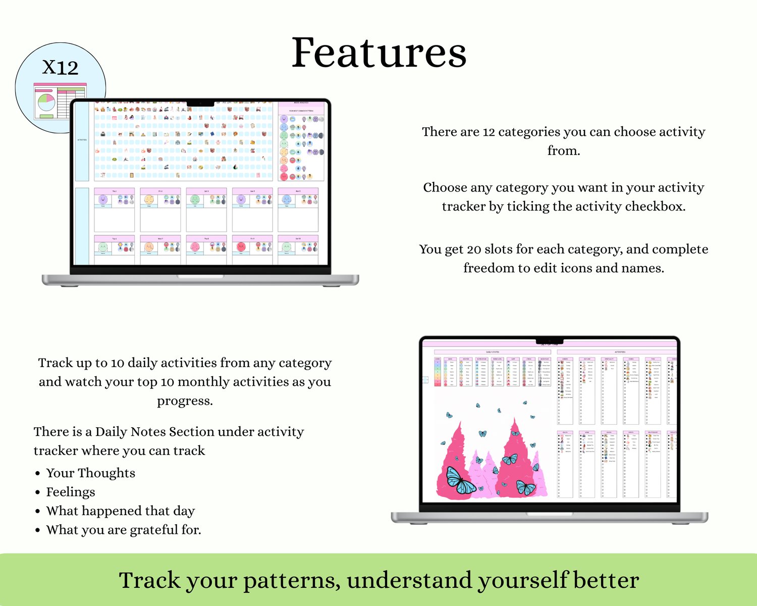 This beautifully designed tracker helps you stay connected to your mood, habits, and daily patterns without any effort. Just choose your states from simple dropdowns, add your activities, and everything else updates automatically.