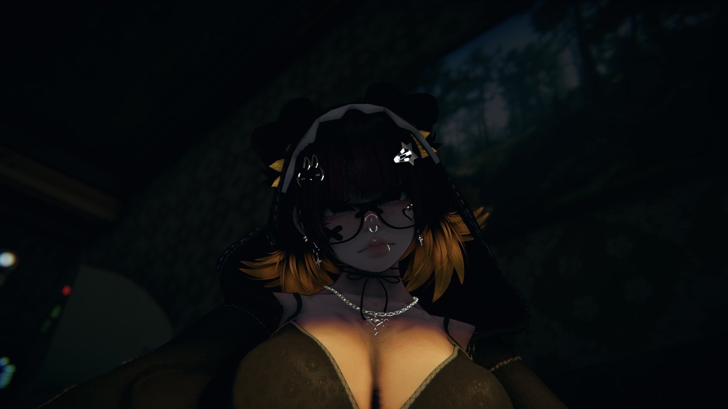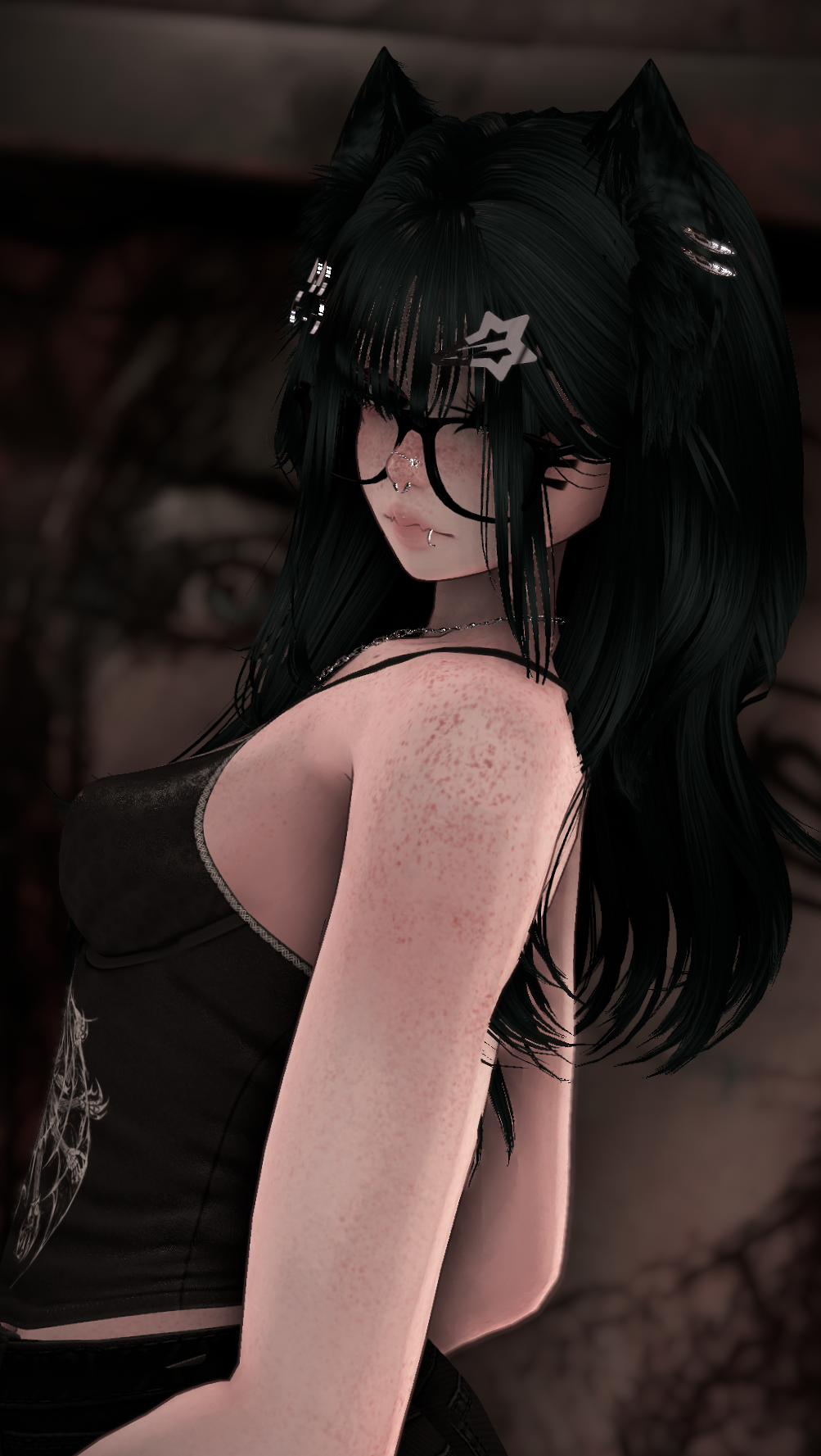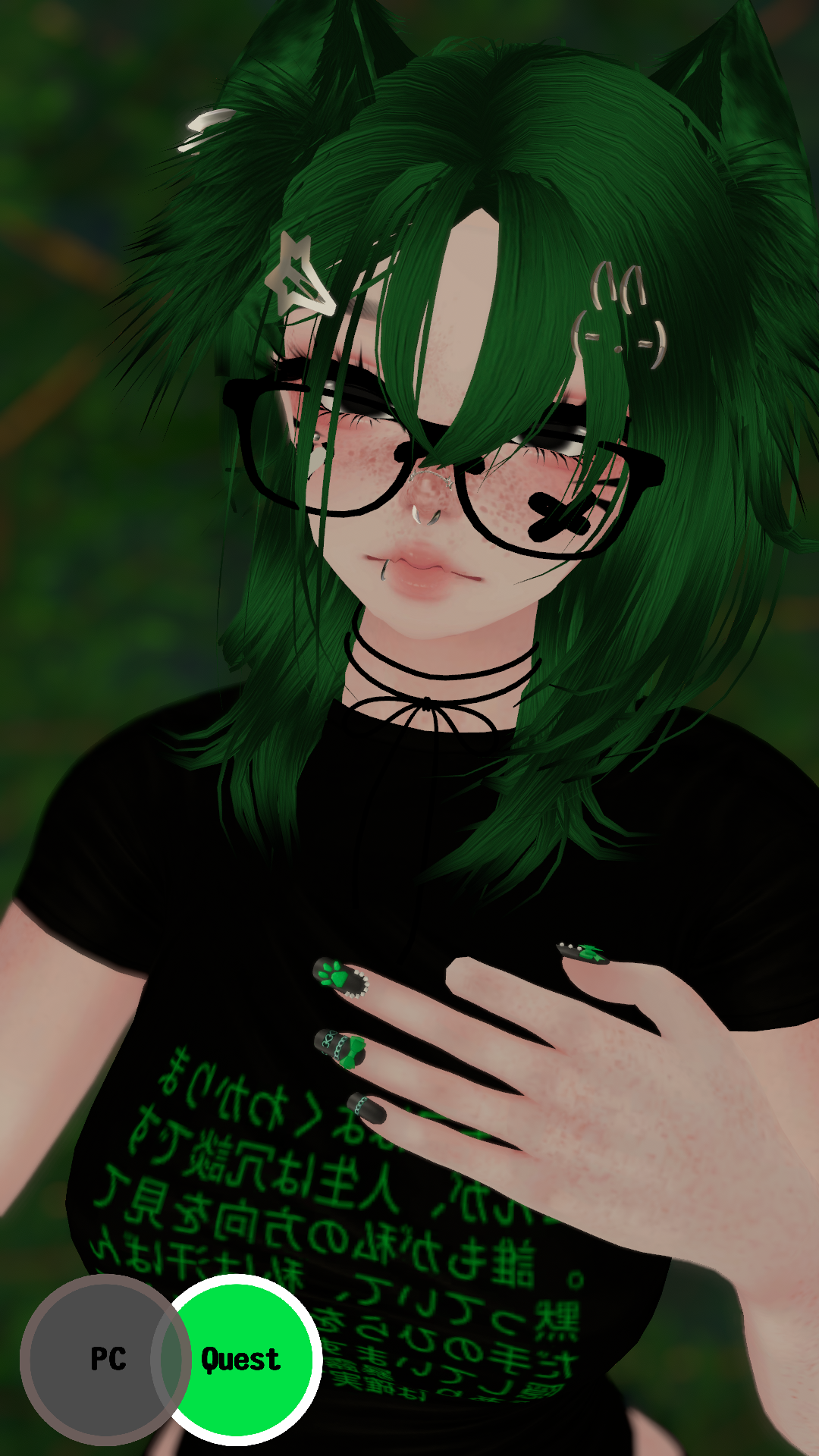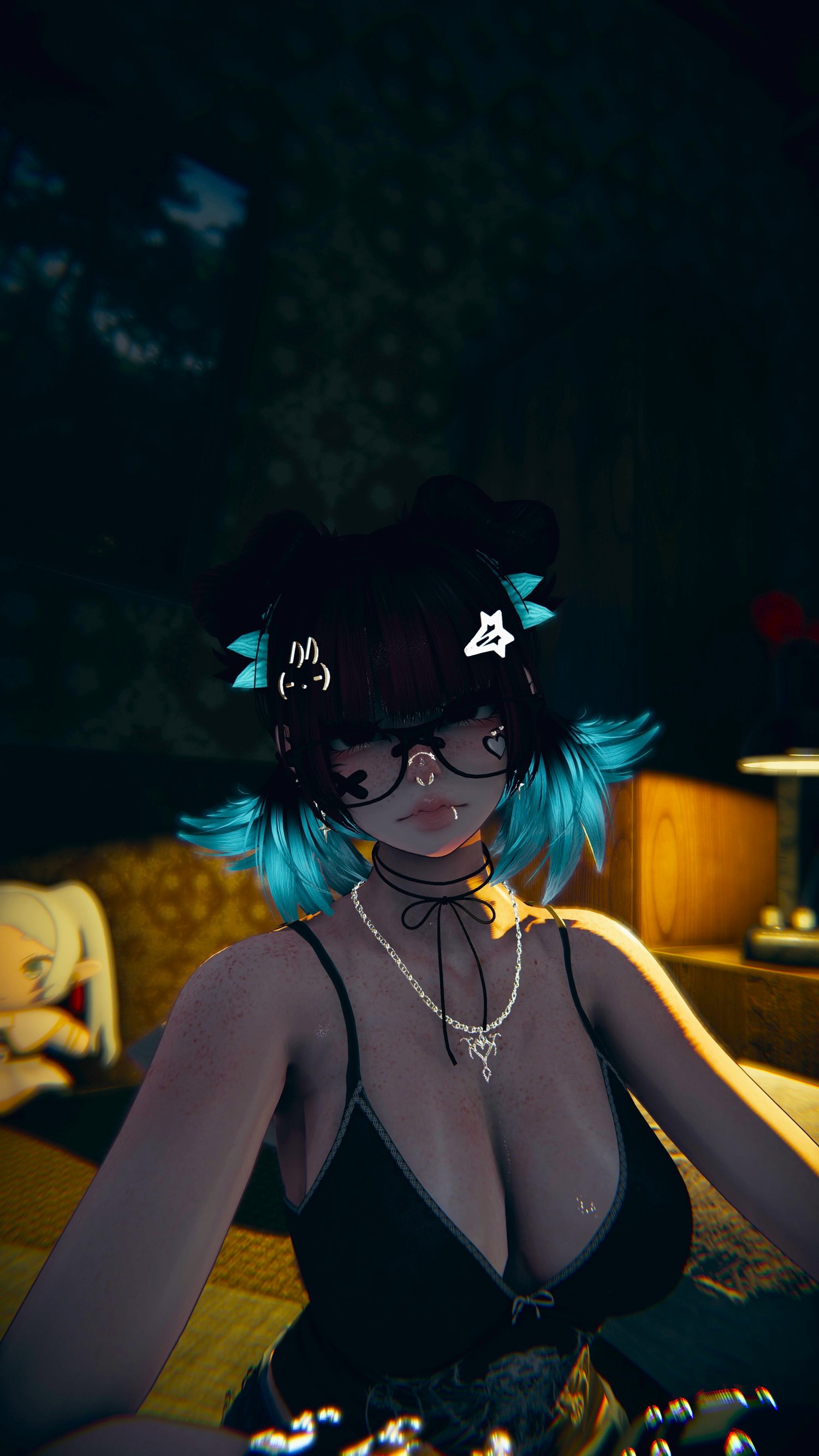 Accessories: arm warmers, bow choker, fluffy ears, Dog Ears, Garters, glasses, hair clip 1, hair clip 2, leg warmers, nails, necklace, Dad Sneakers, socks, tail, Cat a pillar Plush, Bandaids, Star Nose Piercing, septum, Earrings