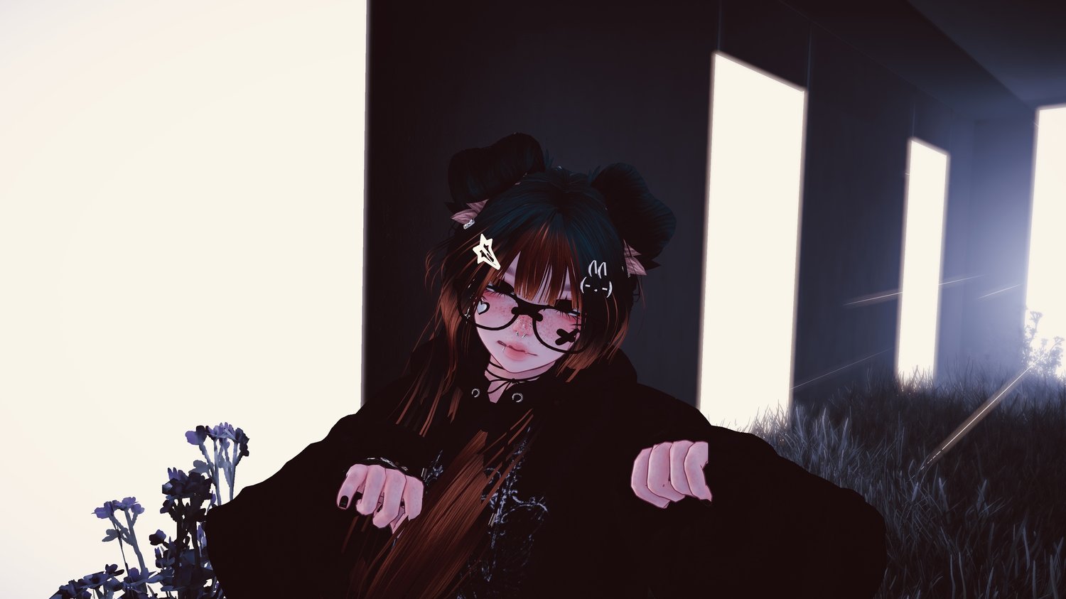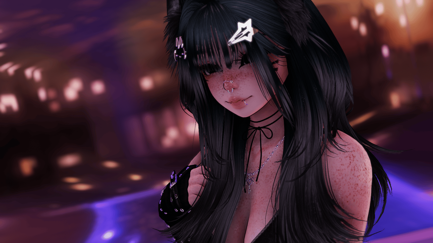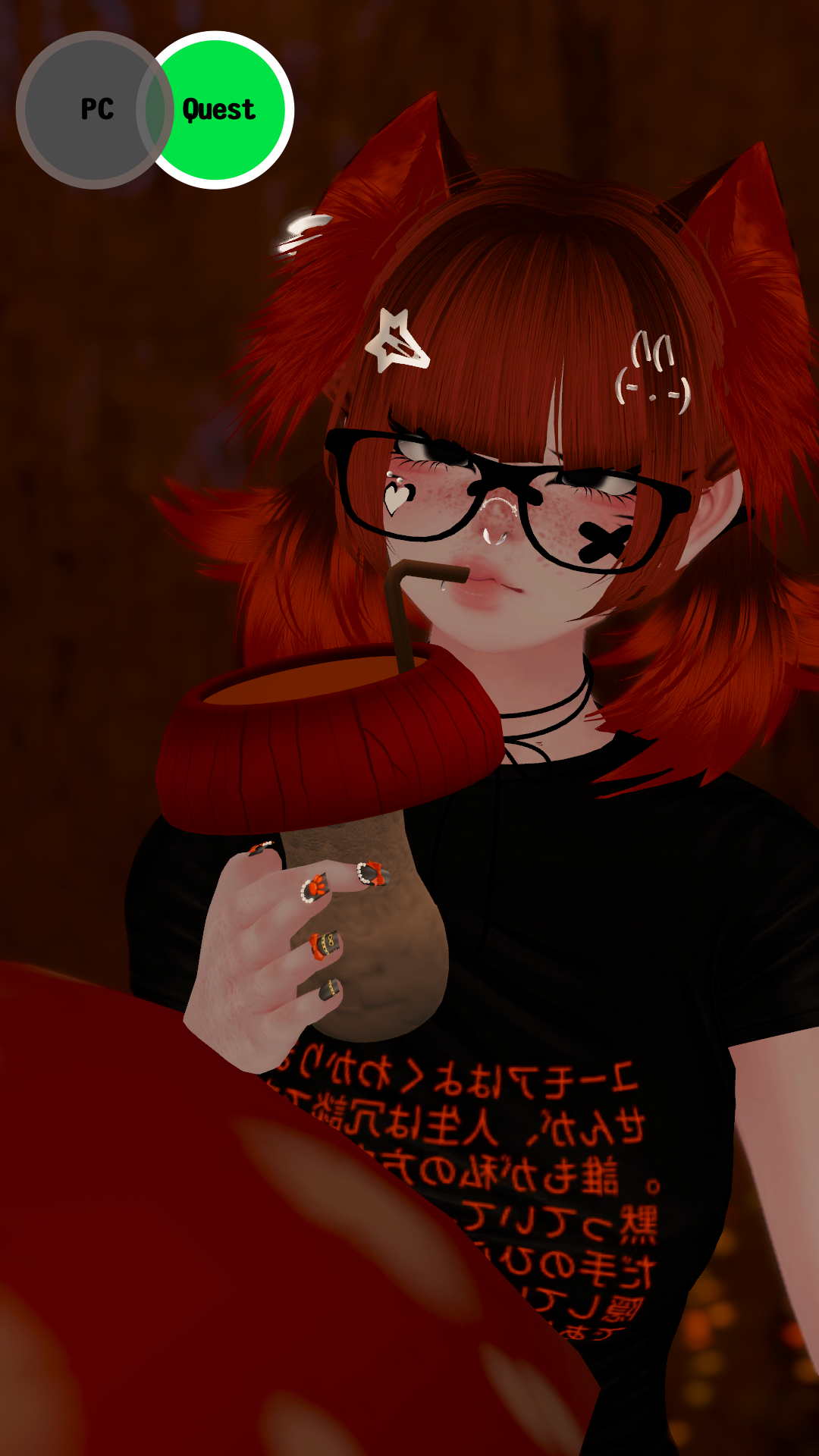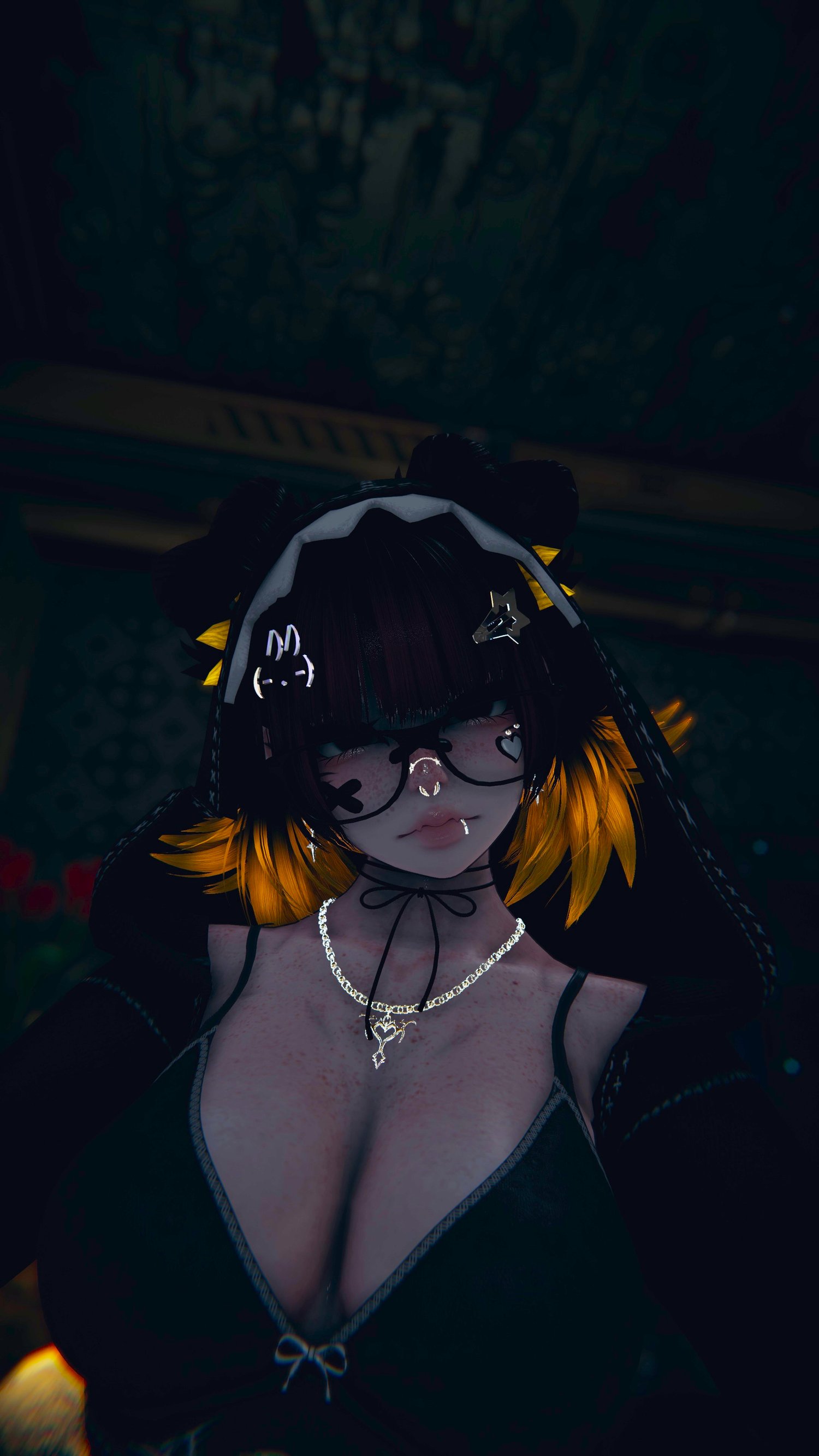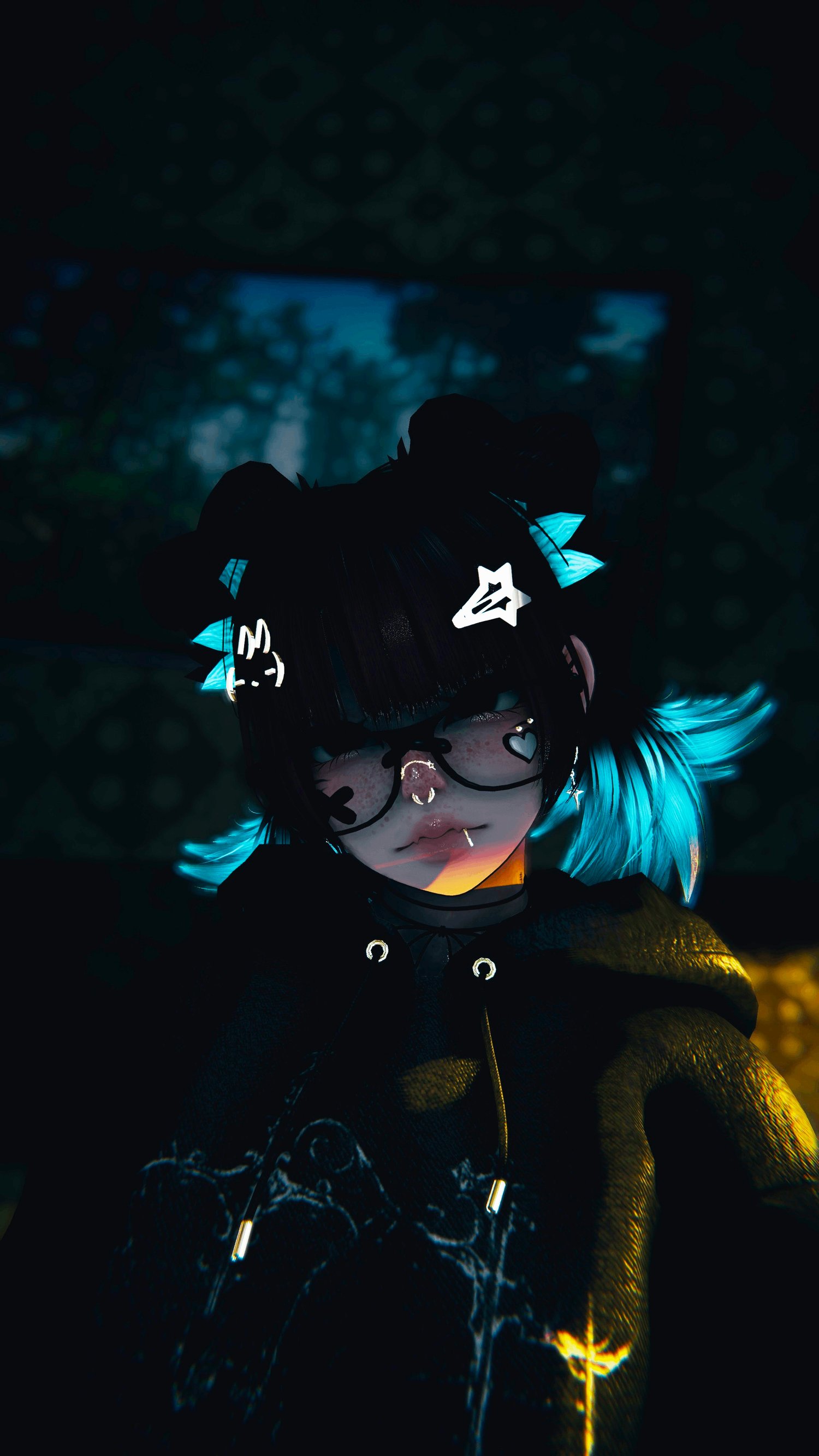 Accessories: arm warmers, bow choker, fluffy ears, Dog Ears, Garters, glasses, hair clip 1, hair clip 2, leg warmers, nails, necklace, Dad Sneakers, socks, tail, Cat a pillar Plush, Bandaids, Star Nose Piercing, septum, Earrings