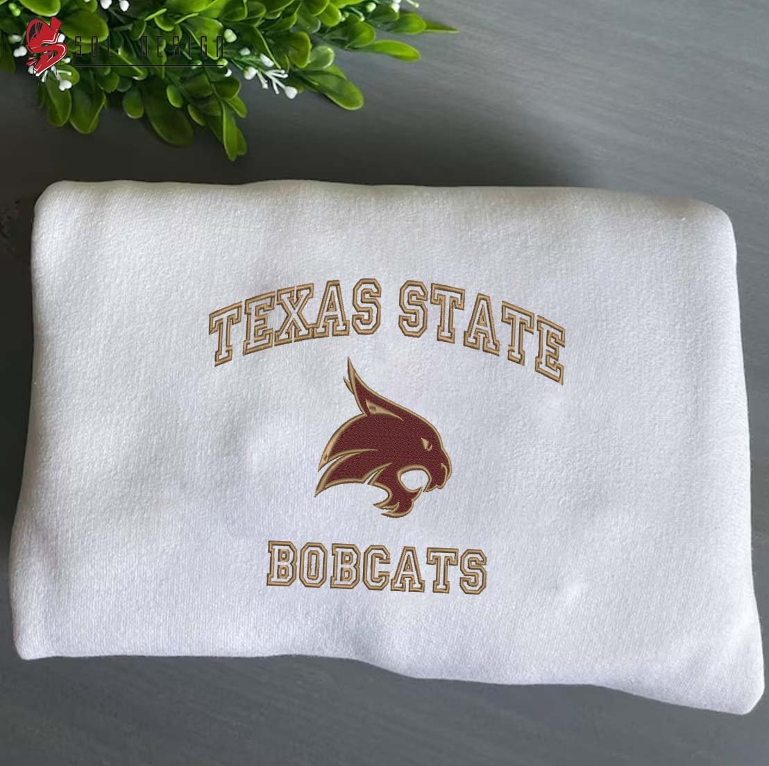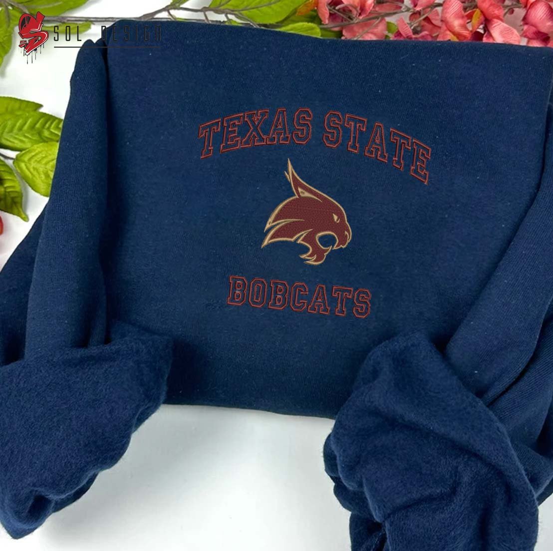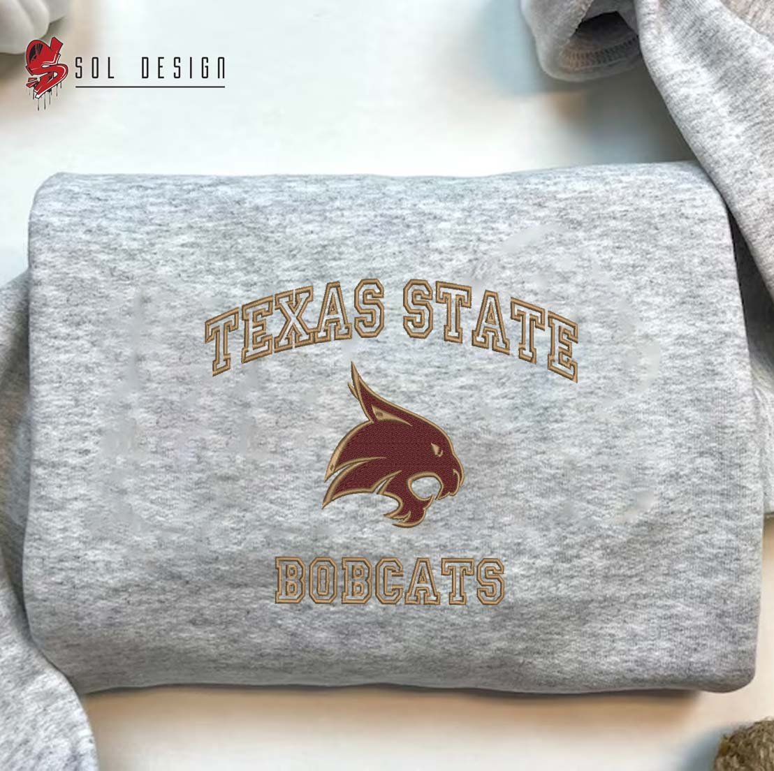 Texas State Bobcats NCAA College Football Team Embroidered Crewneck, Texas State Football Embroidered Sweatshirt, NCAA Texas State Bobcats Team Sweatshirt, Game Day Embroidered Hoodie, T-shirt