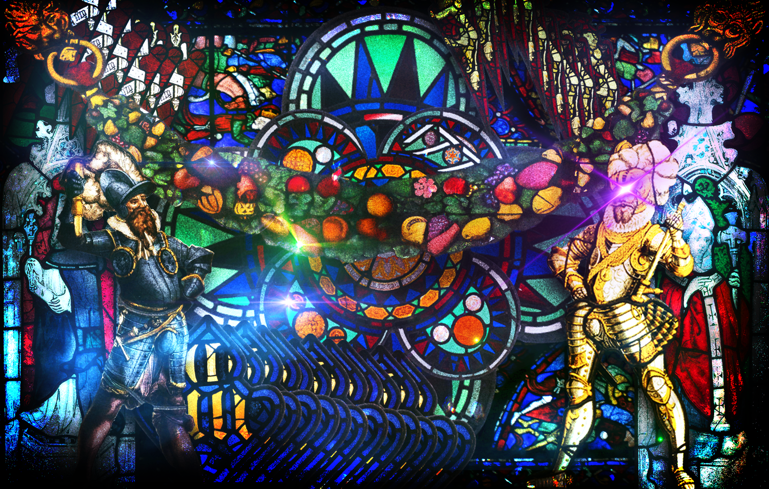A curated bundle of 99 authentic, human-made stained glass window cut-outs (transparent PNGs), meticulously hand-rotoscoped by me from rare, high-definition photographs of historic European stained glass sourced across Europe.