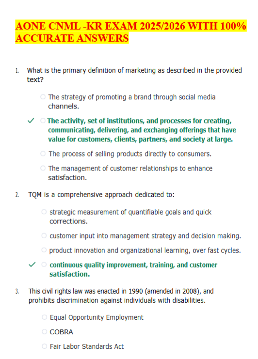 AONE CNML -KR EXAM 2025/2026 WITH 100% ACCURATE ANSWERS