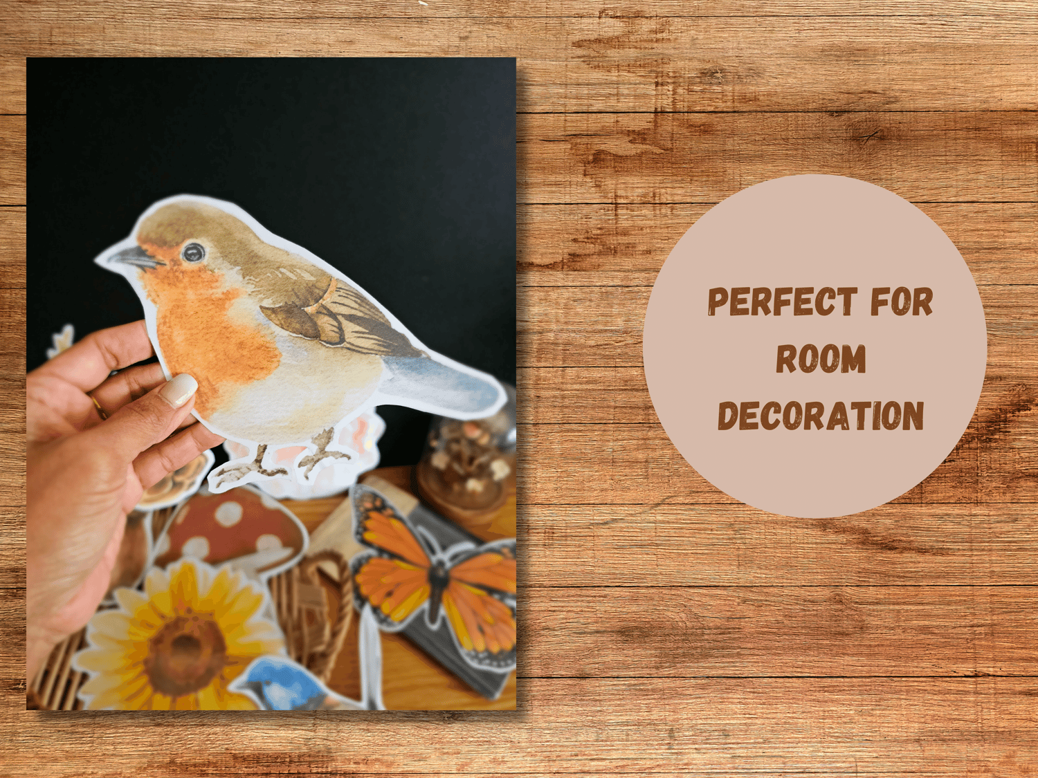 A cute set of 8 nature themed cut out decals to place on your wall!