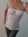 It is recommended that you make a toile once you have tweaked the pattern for size – at this stage you can slice and spread or nip and tuck, and lengthen/shorten if need be, and transfer these amendments to your pattern to ensure a perfect fitting corset. This is quite a long design so the bones may need to be cut short of the bottom to allow for ease of sitting.