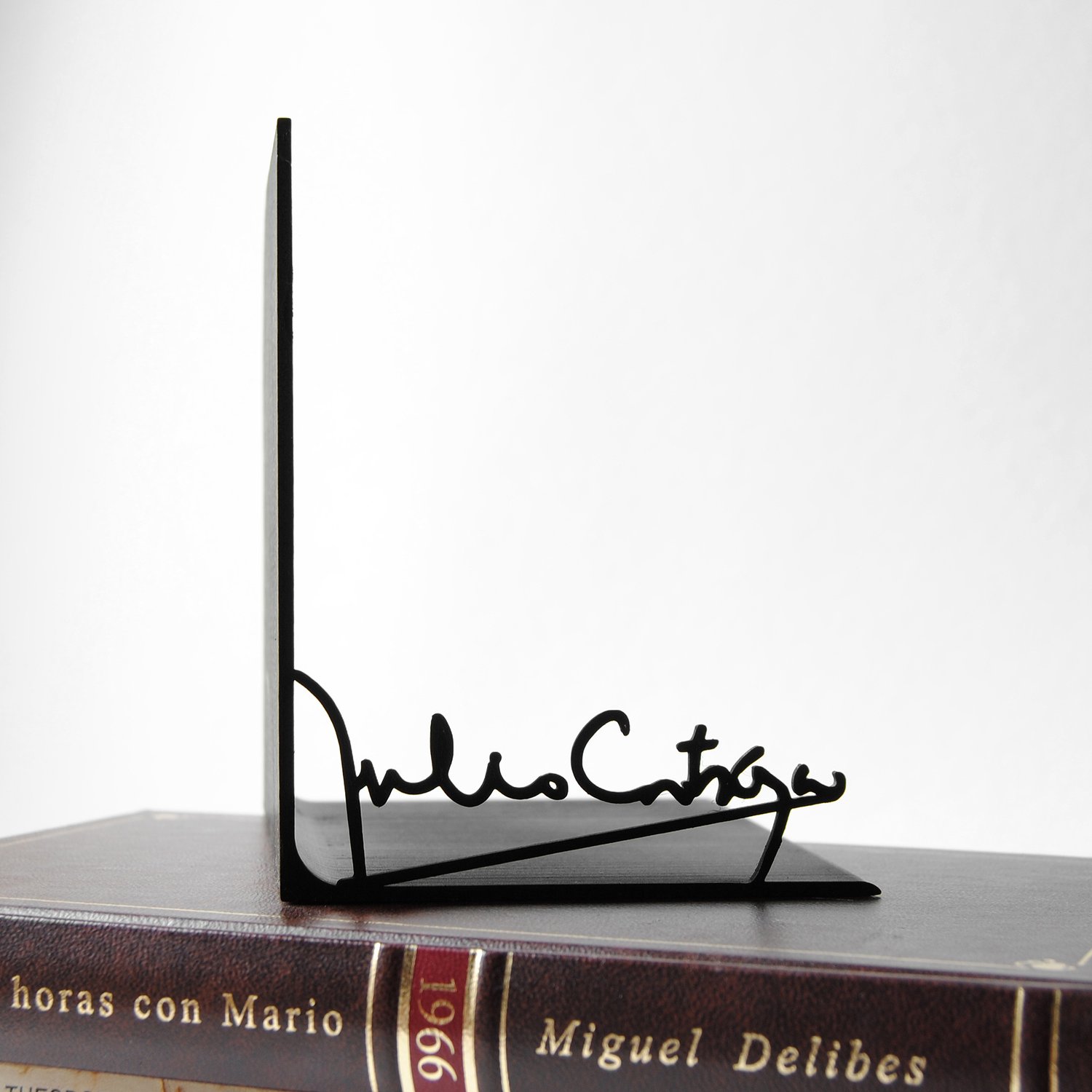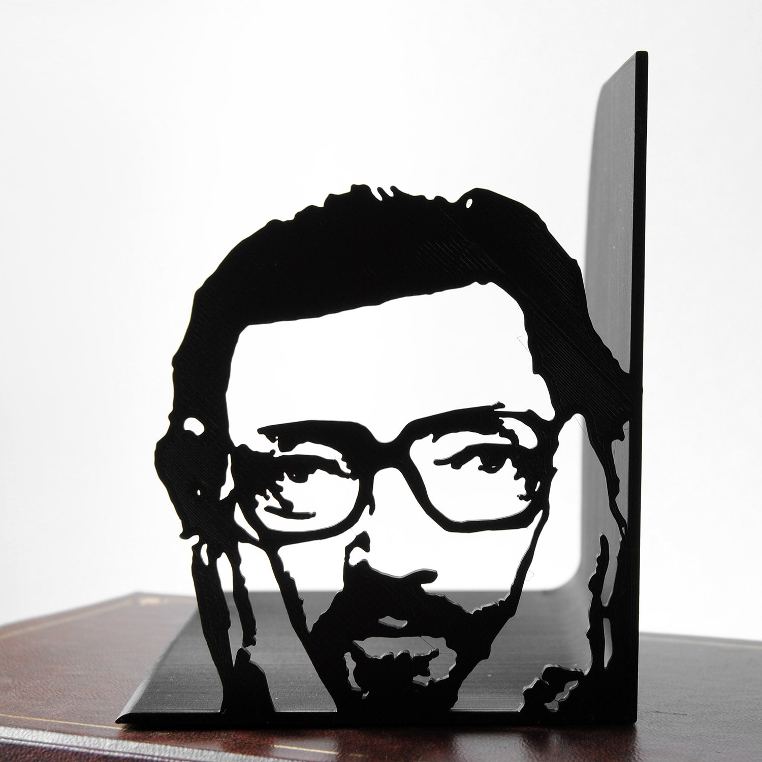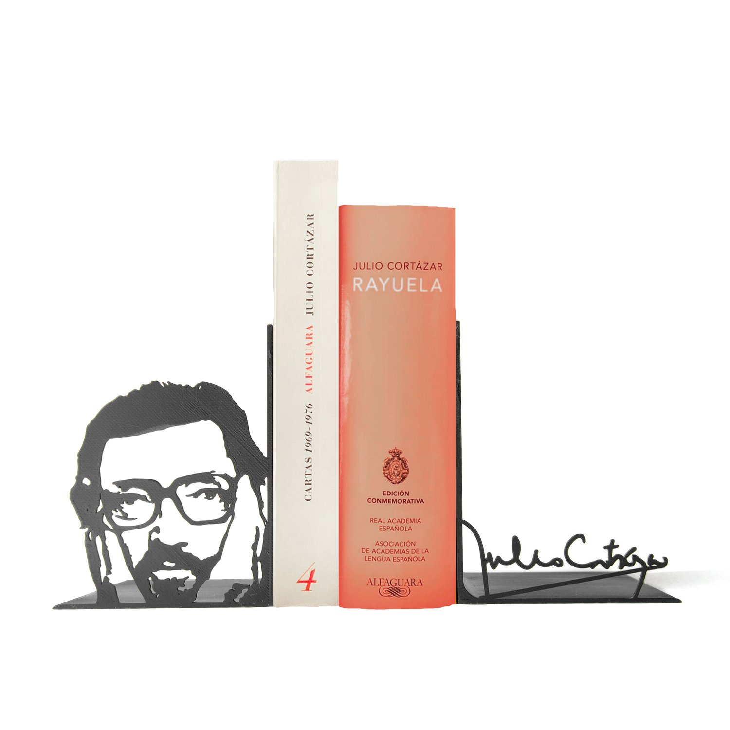 Bookends depicting Argentinean author Julio Cortázar. 3d printed in PLA, painted in black.