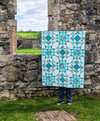 There are 2 different block designs in this quilt pattern, using Half Square Triangles, Flying Geese and Diamond in a Square.