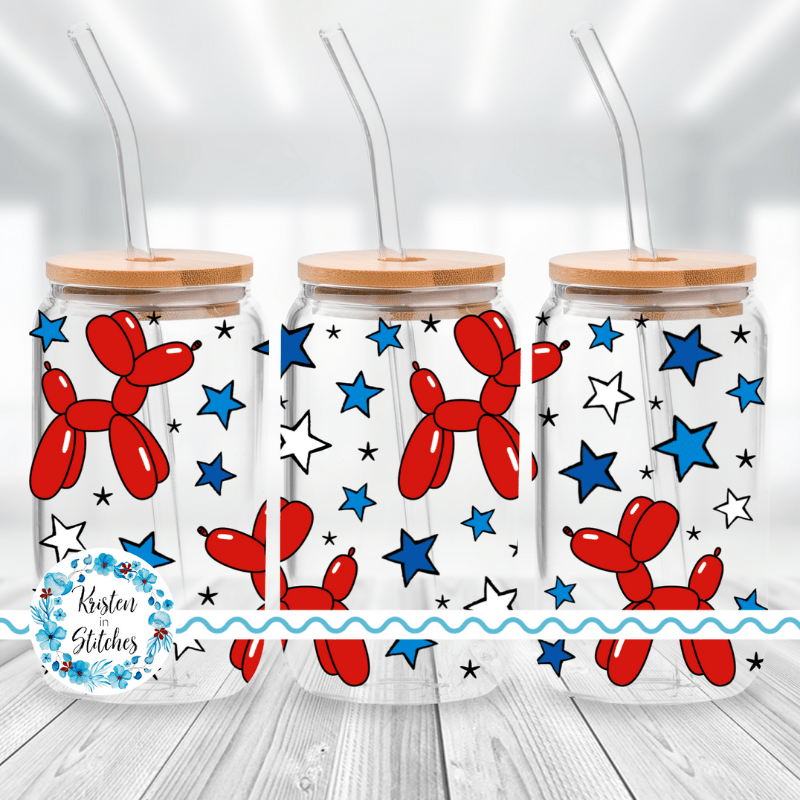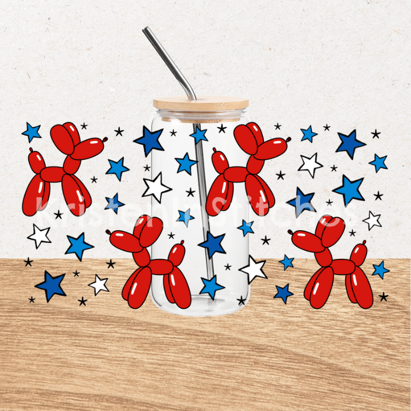 Patriotic Balloon Dog Glass Can Wrap Transparent PNG, Red White and Blue Stars