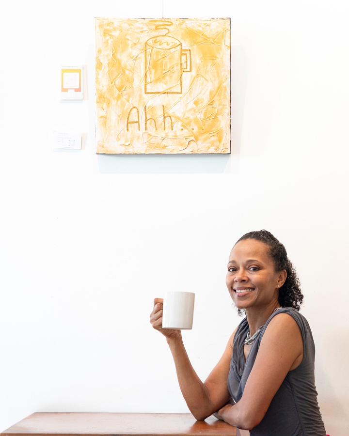 She is a talented artist. She is very philanthropic and likes collaboration. This spring time art exhibit we are giving to mothers. When she does her art event in October she gives to a cancer initiative. Her art is centered around motivation, inspiration, good vibes, nature and many times is seen as, "what do you see" in her artwork. She is an actor, podcast host, author, and wellness coach. Personal development is continual for herself and her clients. Her motto is to keep going. She has a BA in Communication with Business Administration Emphasis. She has certifications in sales and certification as an art therapy practitioner. She genuinely understands the impact of crossbranding and bringing people together. In great anticipation, hoping you will join us in this special event on the water in Marina Del Rey this May.