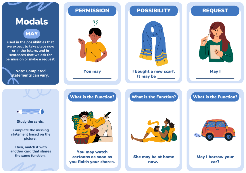 Modal Auxiliary Words Flashcards for Teachers, Montessori and Homeschooling
