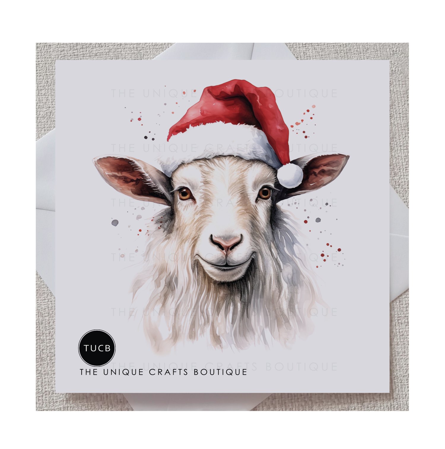 Printed with a cute watercolour Goat wearing a Christmas hat.
