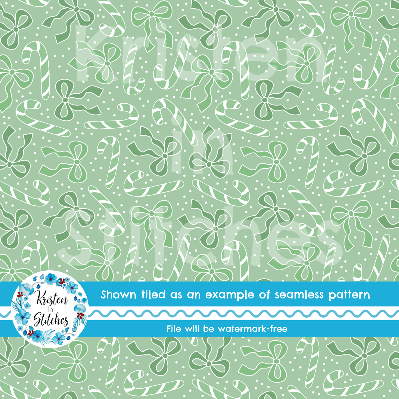 Candy Canes and Bows Winter Christmas Seamless Pattern