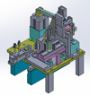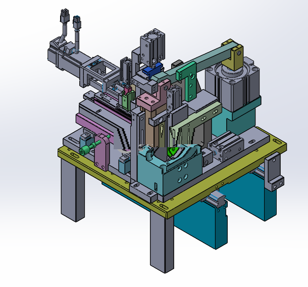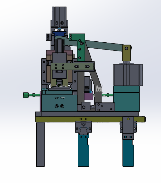 A general-purpose metal strip cutting mechanism that uses a servo motor for feeding and a pneumatic cylinder for cutting.