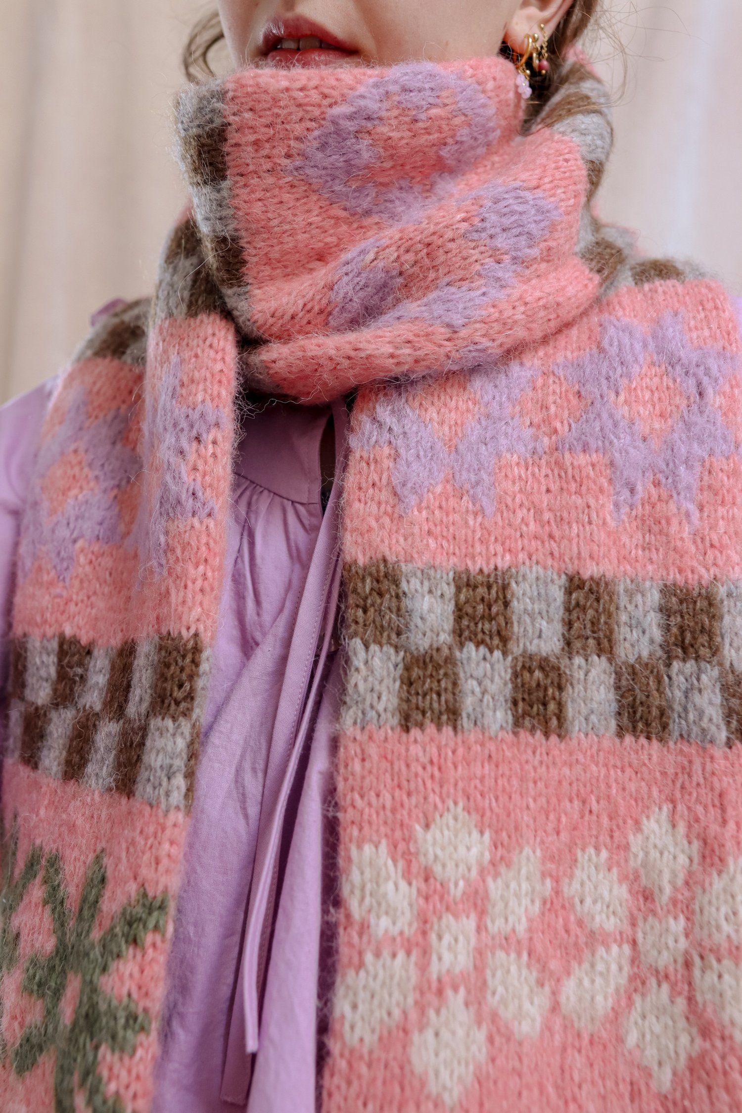 To be able to wrap the scarf once around your neck, we suggest a final scarf length that is approx. your height + 15 cm | 6 inch.