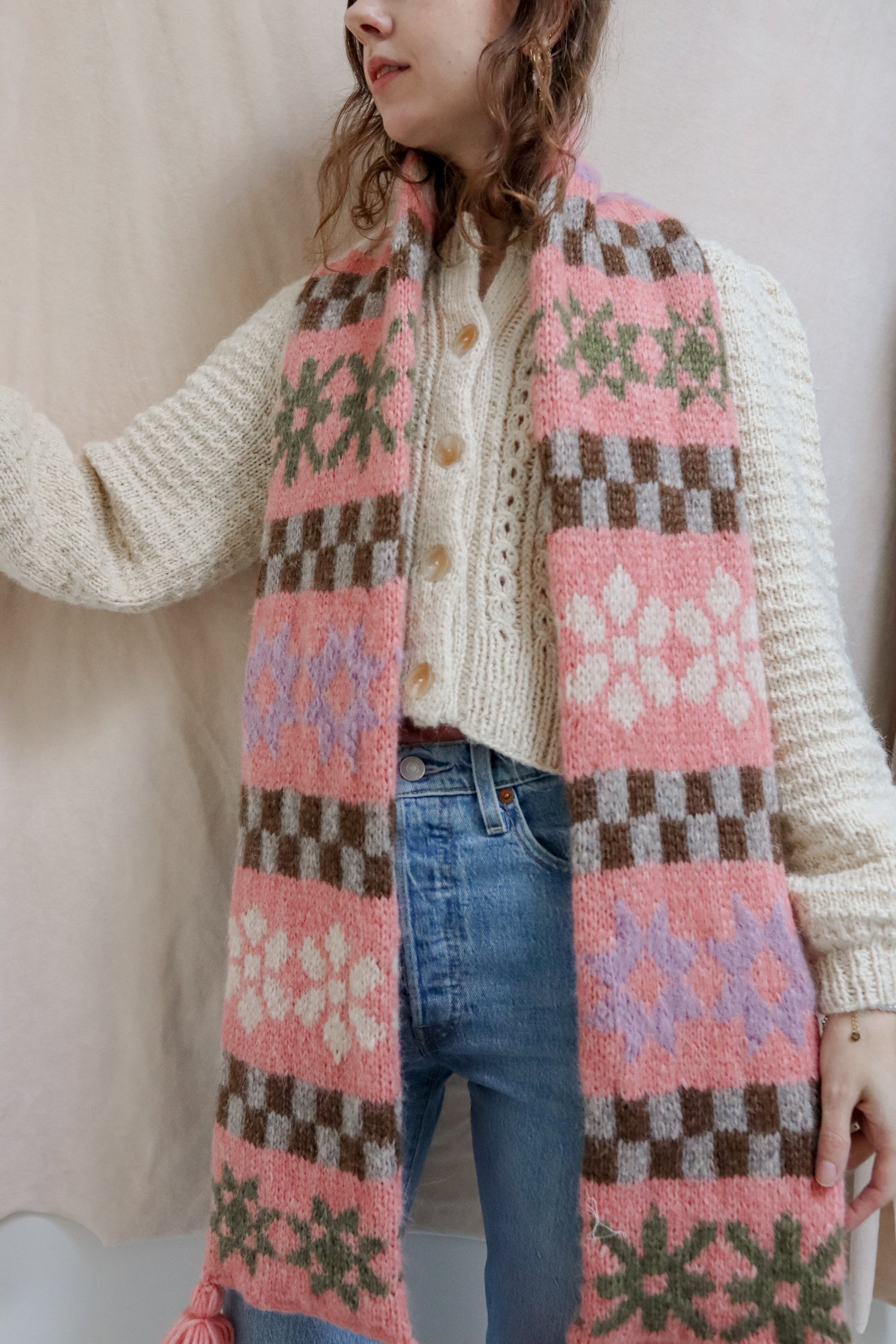 The Quinty Quilt Scarf is a made-to-measure scarf that you can design yourself! The pattern includes 8 different motifs that are inspired by traditional and modern quilts. This is a good opportunity to play with yarns and use scraps :)