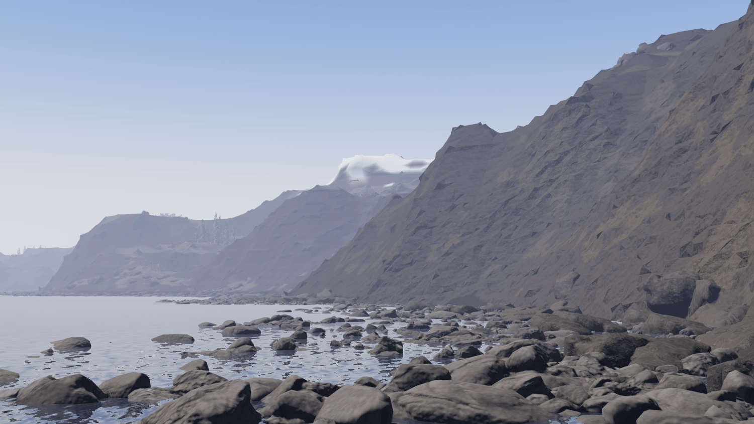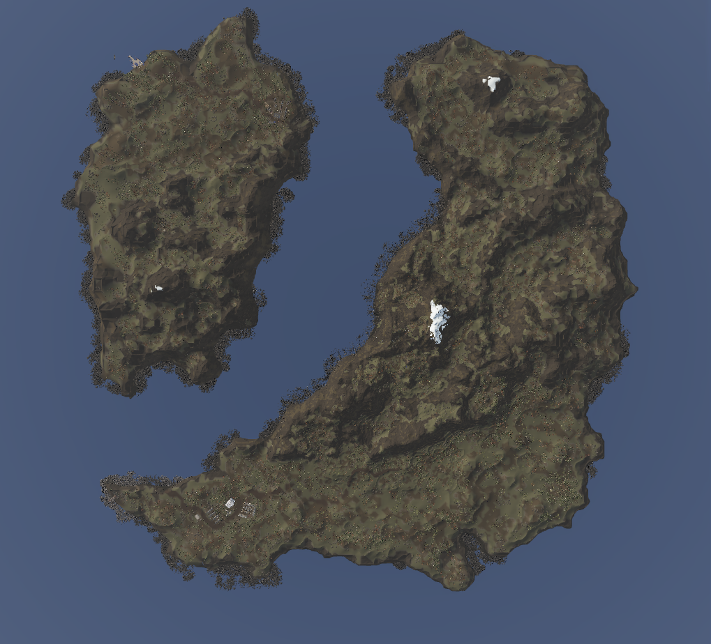 Two large Nordic islands in the open ocean. With dense pine forests and steep snow capped, rocky mountains in an alpine environment. This map is perfect for hiking and exploration, with small cabins and observation points in the wilderness.