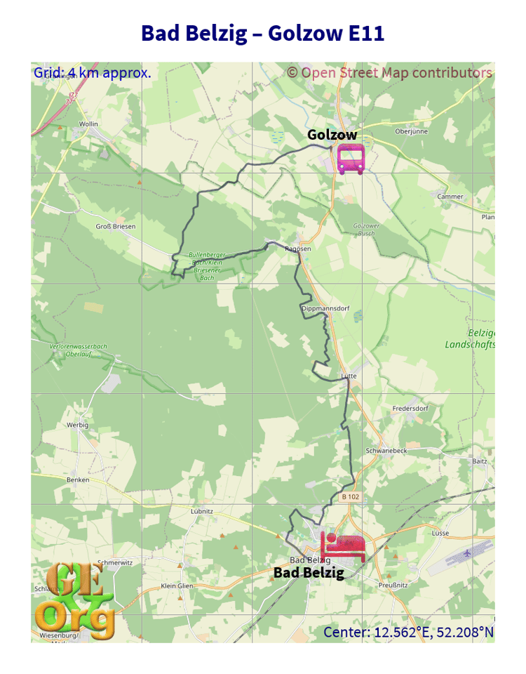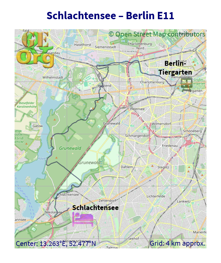 European Long Distance Hiking Path E11, Schlachtensee - Berlin-Tiergarten, one GPX file, one GeoJSON file, one OpenStreetMap image.