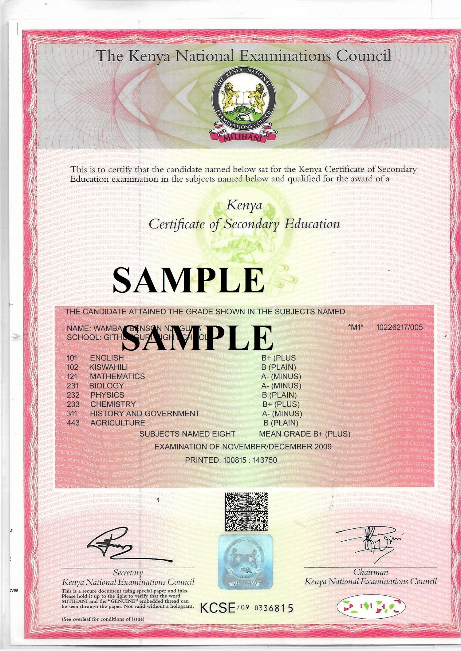 Fully editable kenyan KCSE certificate