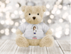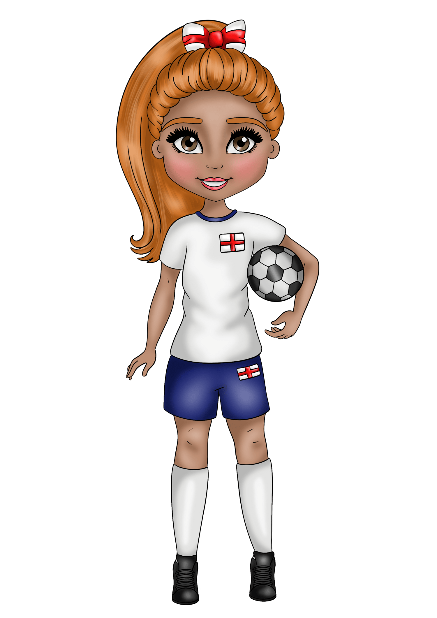Beautiful personalised football teddy featuring our England strip doll, choice of hair, skin and eye colours ( to order braids dark skin - please message us through the contact page with requirements.)