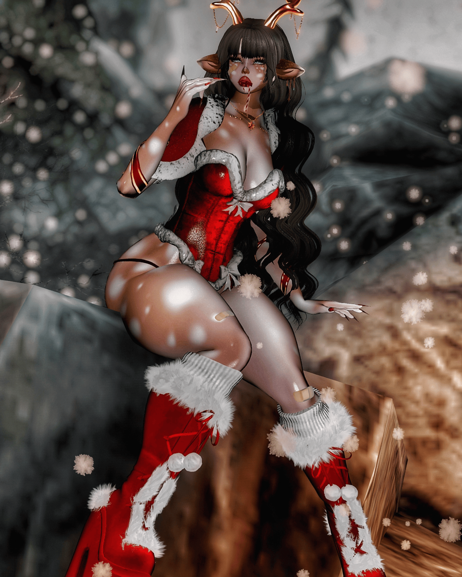 body textures: deer head text by me body text , Christmas lights tats , base body textureย