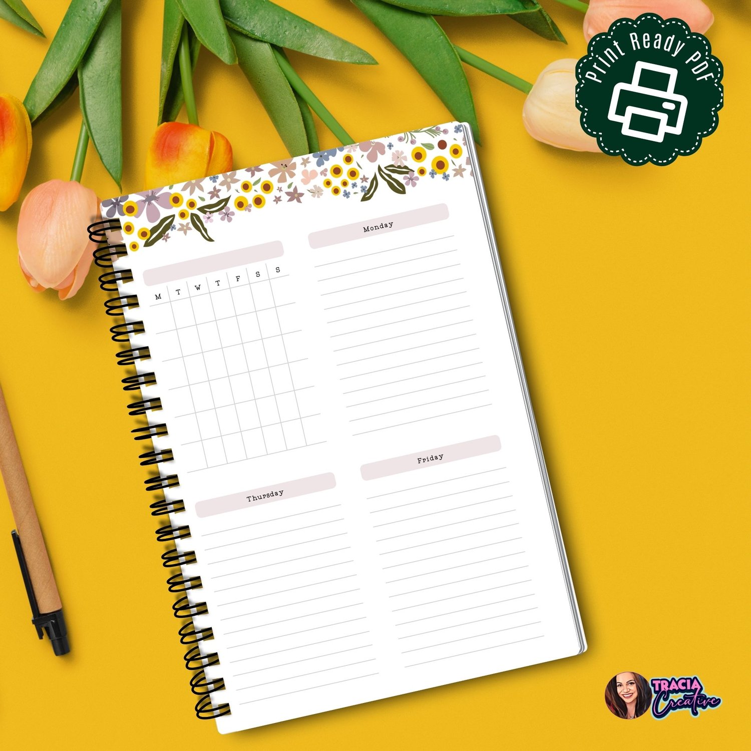 Bring elegance and calm to your weekly planning with the Weekly Planner - Floral, expertly designed by Tracia Creative. This stunning A5 planner combines functionality with a beautiful floral motif, making organization a delightful experience.