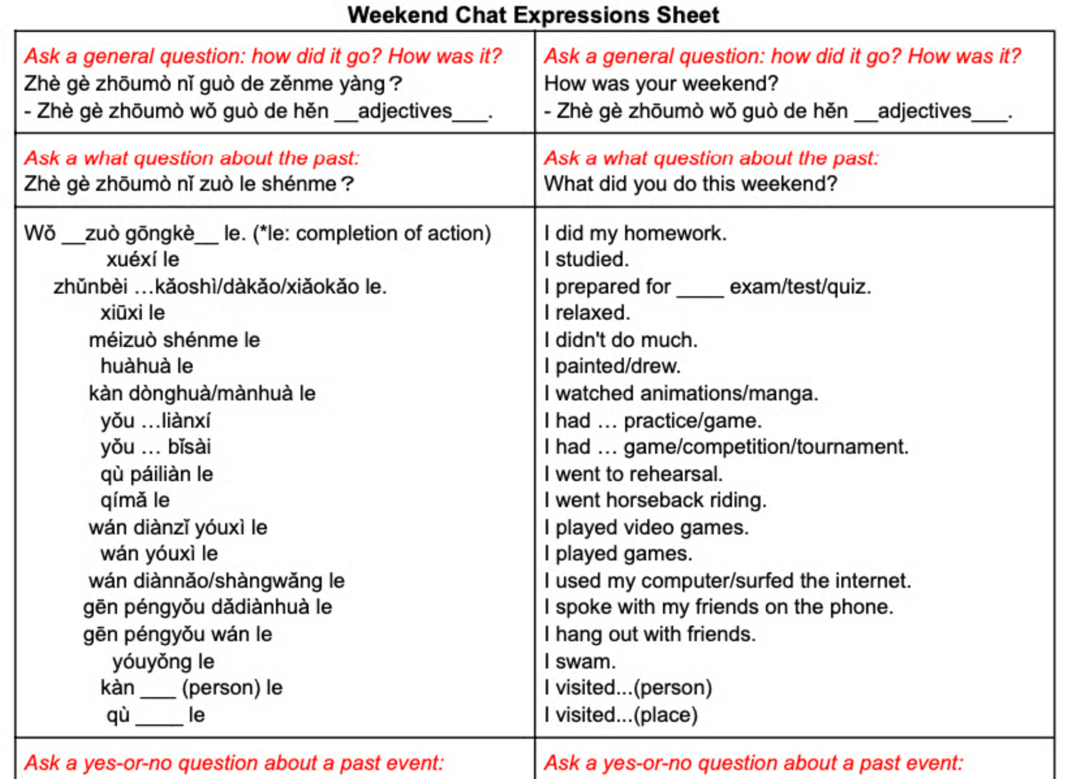 - 轻松开启周末分享的课堂话题单,让学生用中文表达真实生活。
