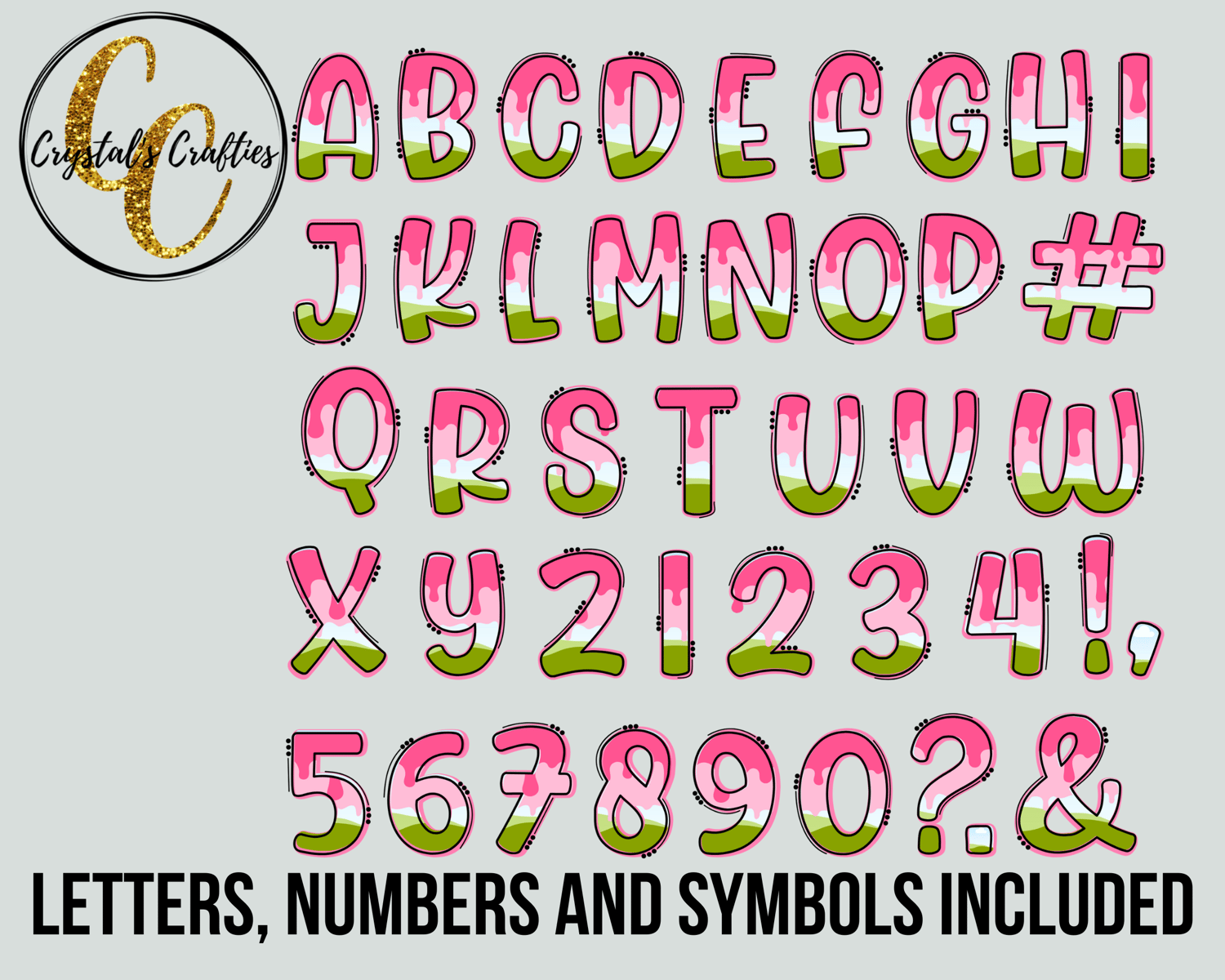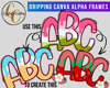 26 A–Z uppercase dripping Canva frames, numbers 0-9 and basic symbols