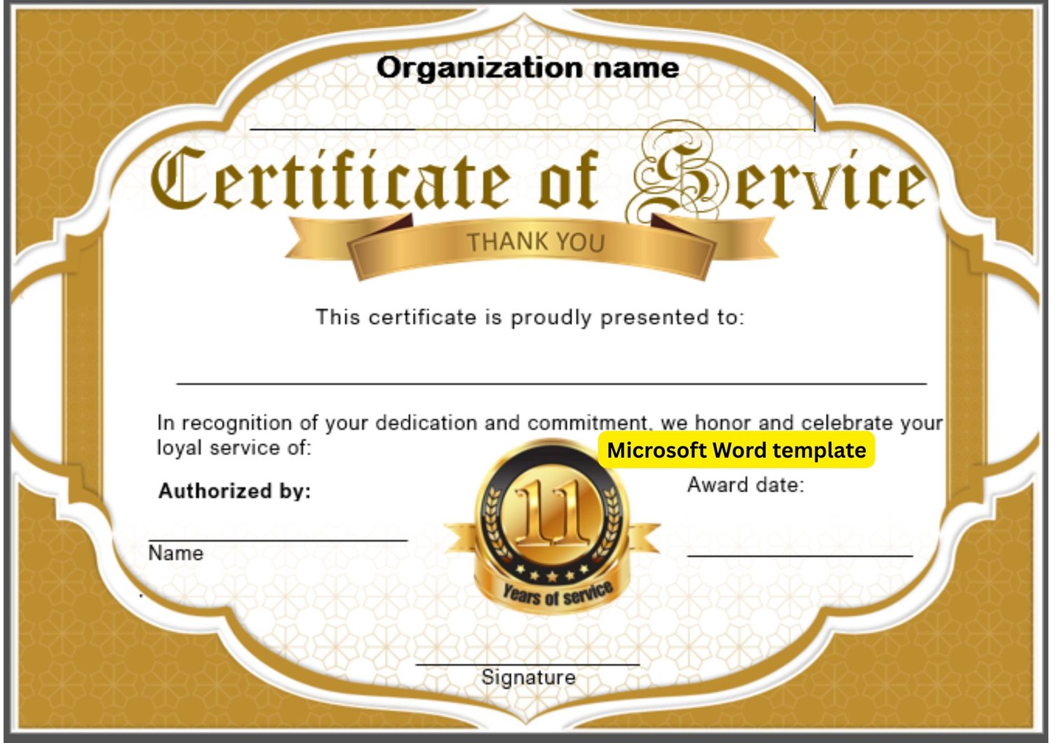 11 Years service - Editable Microsoft Word template - Landscape - with customized logo G0303LY110098