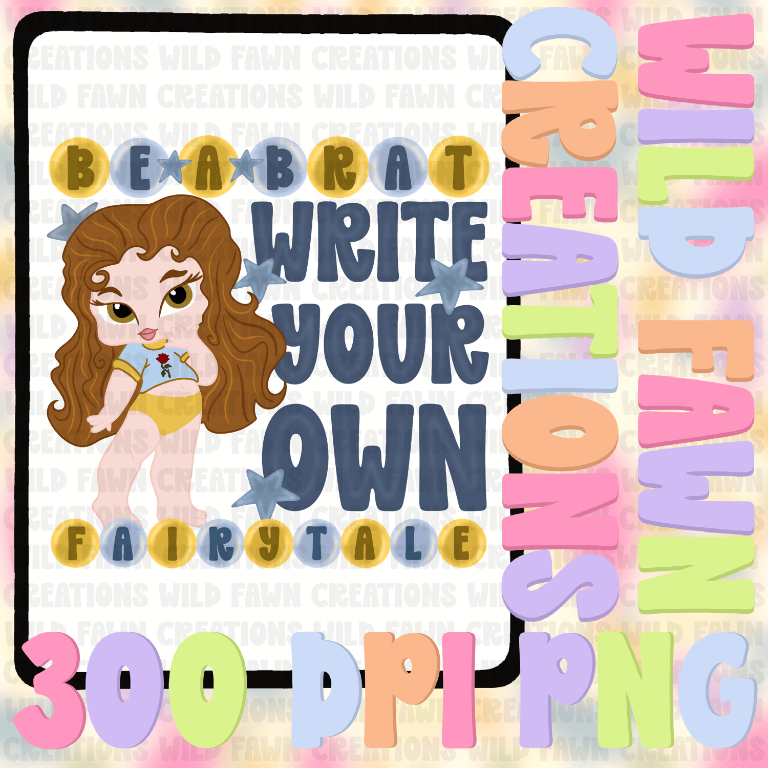 Be A Brat Write Your Own Fairytale PNG | Book Princess Magical Digital Download