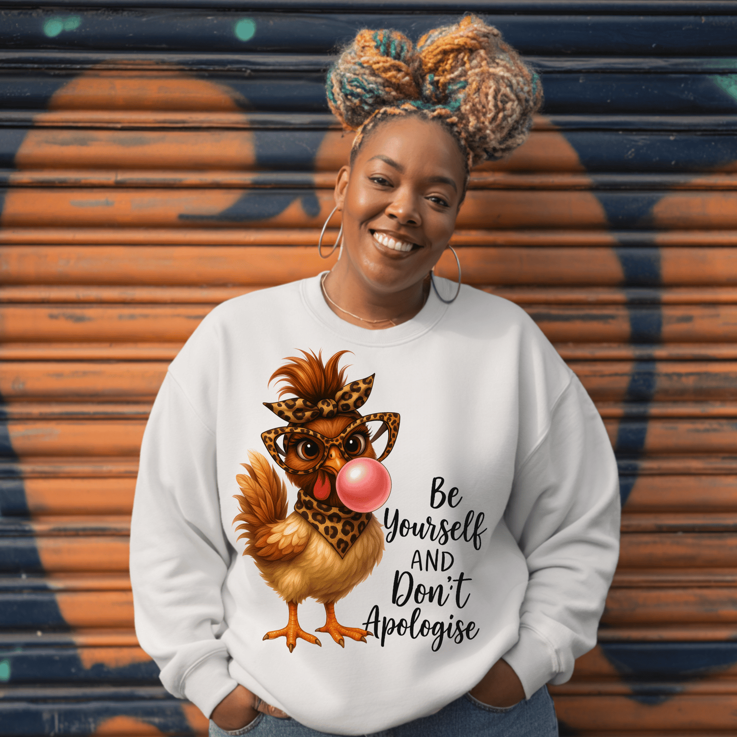 Bring bold confidence and unapologetic attitude to your creations with this Be Yourself and Don’t Apologise Chicken PNG 🐔💥