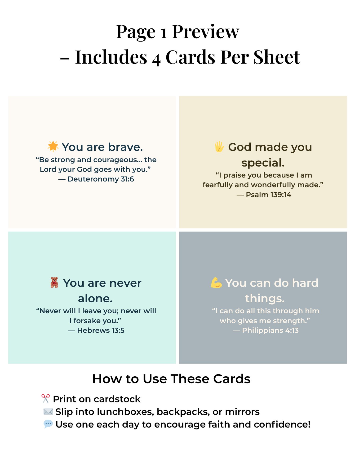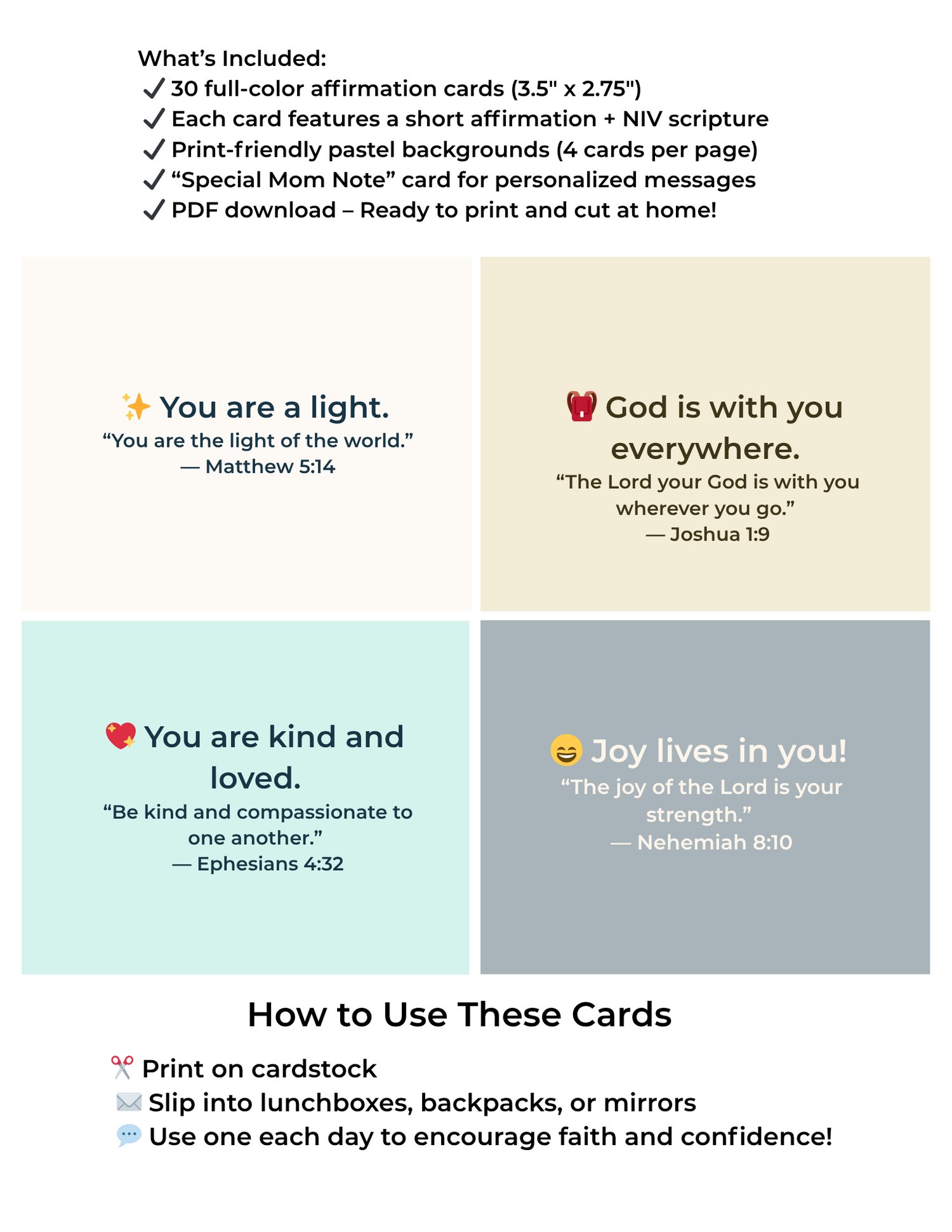 ✔️ Each card features a short affirmation + NIV scripture