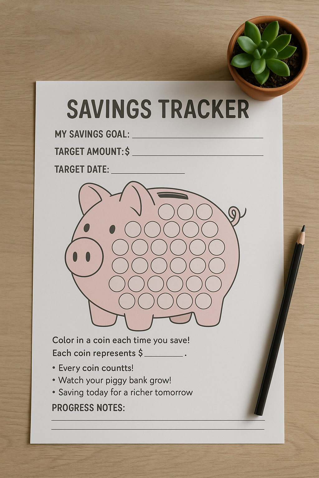 Make saving money fun, visual, and motivating with this beautifully designed Piggy Bank Savings Tracker! Whether you’re working toward a small goal or a big dream, this printable sheet is the perfect way to track your progress and stay inspired.