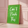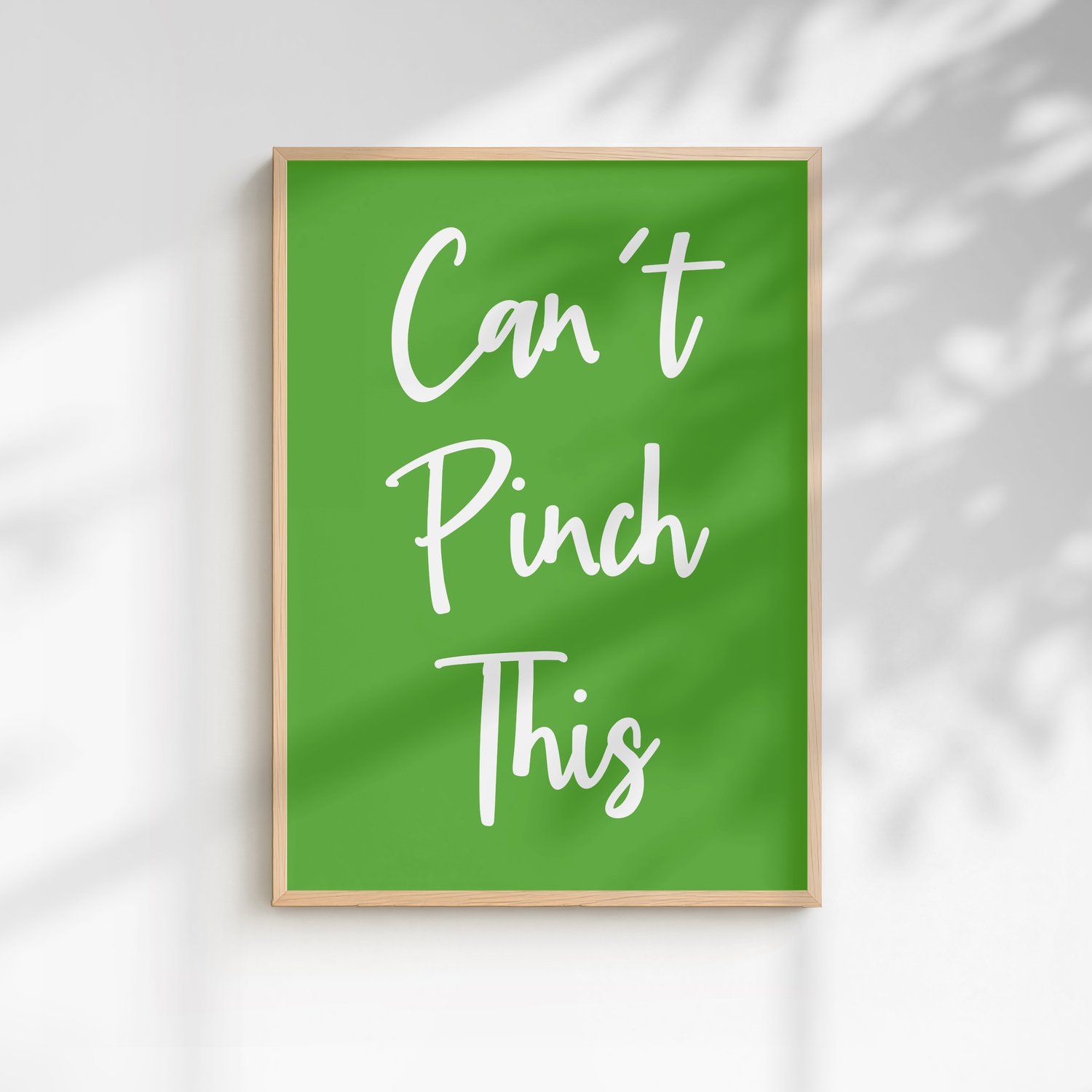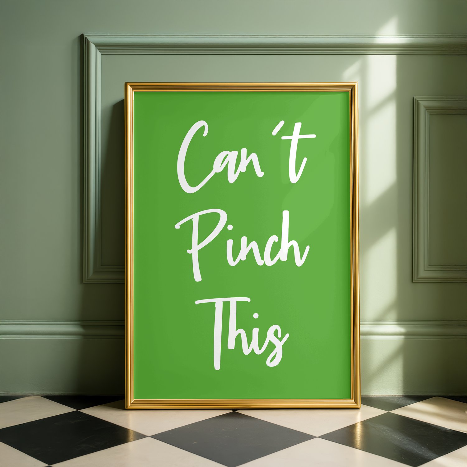 Add a fun pop of St. Patrick’s Day charm to your home with this bold “Can’t Pinch This” printable wall art. Featuring crisp white script on a vibrant Irish-green background, this design is perfect for holiday decorating, parties, entryways, classrooms, and festive photo displays.