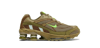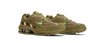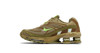 Dans le cadre d'une collaboration de quatre pièces avec la marque de skate new-yorkaise, la Supreme x Shox Ride 2 'Neutral Olive' habille la chaussure de course des années 2000 d'une palette de vert mousse. L'empeigne est fabriquée en mesh ventilé olive avec des superpositions ton sur ton en cuir et en nubuck. Les éléments de marque de la chaussure, notamment la languette " S " et le Swoosh moulé sur le panneau arrière, se distinguent par des accents verts lime éclatants. L'amorti léger est assuré par des unités de semelles Air visibles à l'avant-pied et par quatre piliers Shox sous le talon, chacun comportant un mot-symbole Supreme enveloppant en lettres blanches.