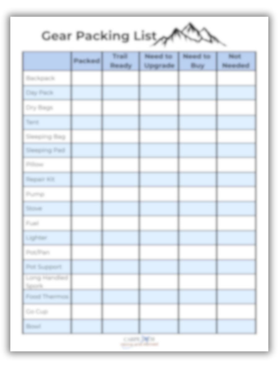 - Gear, food, and packing preparation