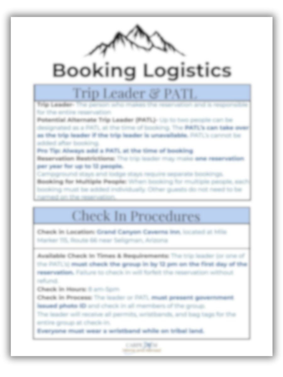 The Havasupai Planner is a pre-filled, trail-specific planning system designed to help you confidently prepare without sorting through scattered blog posts, forums, or conflicting advice.