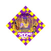 Graduation cap with personalized topper.