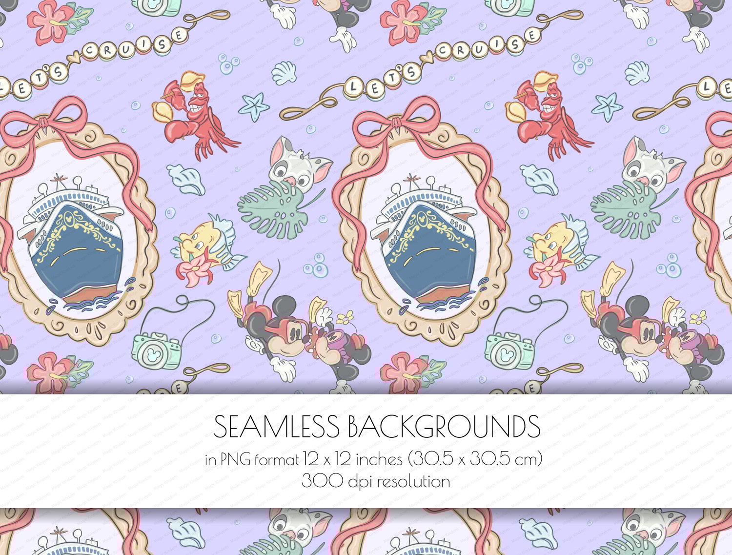 1 Disney Let's Cruise PNG Seamlessbackground in PNG format 12 x 12 inches (30.5 x 30.5 cm) 300 dpi resolution .