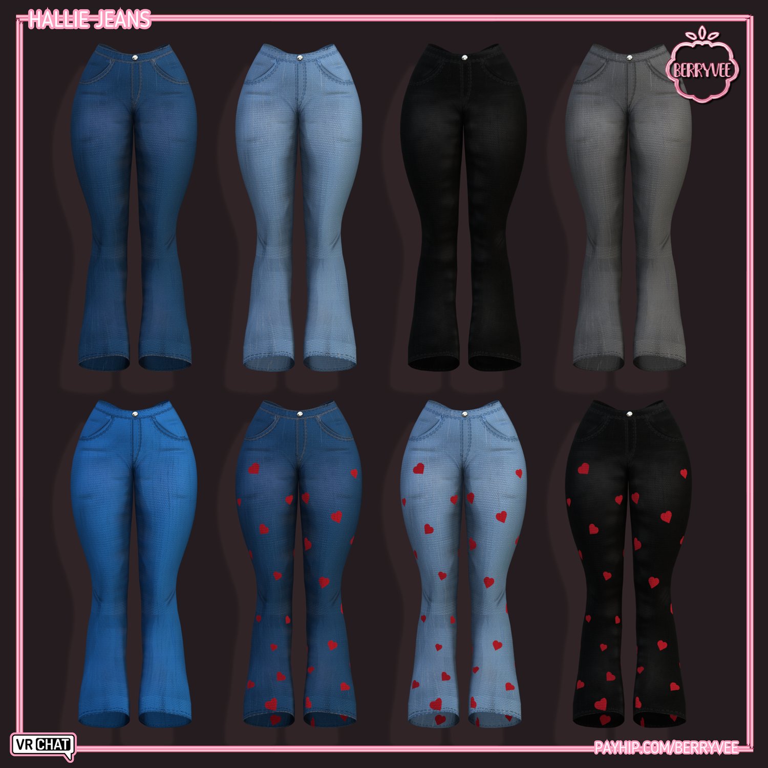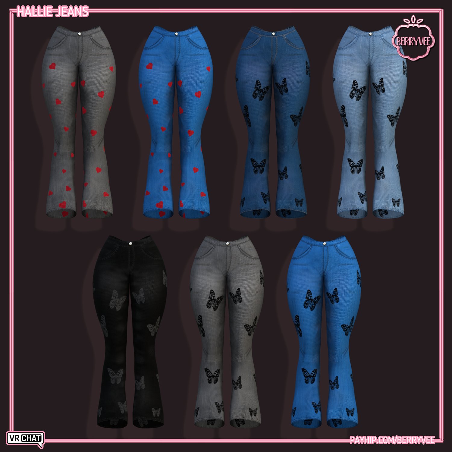 - ✅ All Assets and Avatars sold by berryvee must be properly credited and require hyperlinking to either my Gumroad, Payhip or Discord. [e.g. " Via Hair by berryvee " or " Via Hair by berryvee " ]