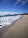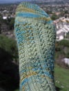 I cast on for this pair of socks when I was in Mexico. Because of its south-of-the-border origin I wanted a Spanish name for the pattern. The movement in the stitch pattern makes me think of the movement of the waves on the beach I could see from my room. Keeping both those things in mind I pulled up the online translator, and played a bit before I hit on something that flowed well: Línea de la Playa, which is Spanish for “line of the beach” or as we would say in English “shoreline.” Perfect.