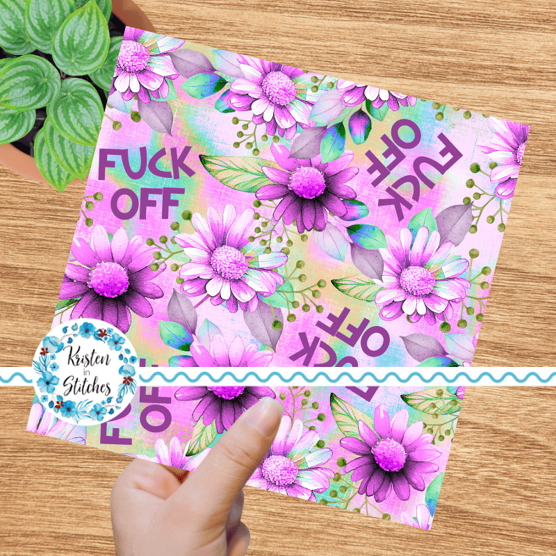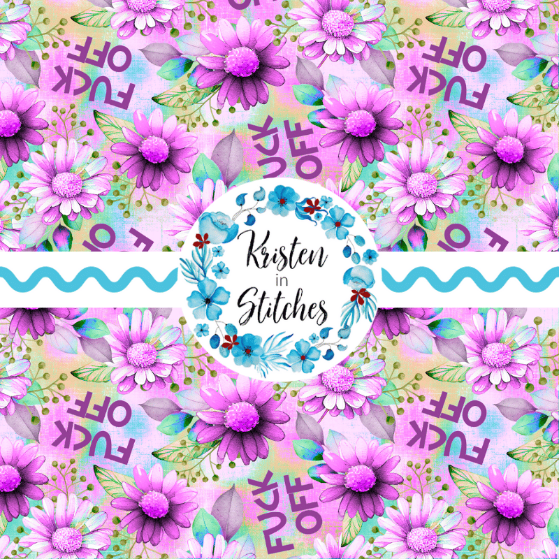 Fuck Off floral pattern with daisy flowers in purple.
