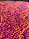 The Comet Trails Blanket builds on the skills from the Comet Trails Cowl & Scarf but can also be worked as a first Fission Knitting project. You will learn how to establish the colour of each cable element – then watch that how that colour intertwines up the length of the blanket.