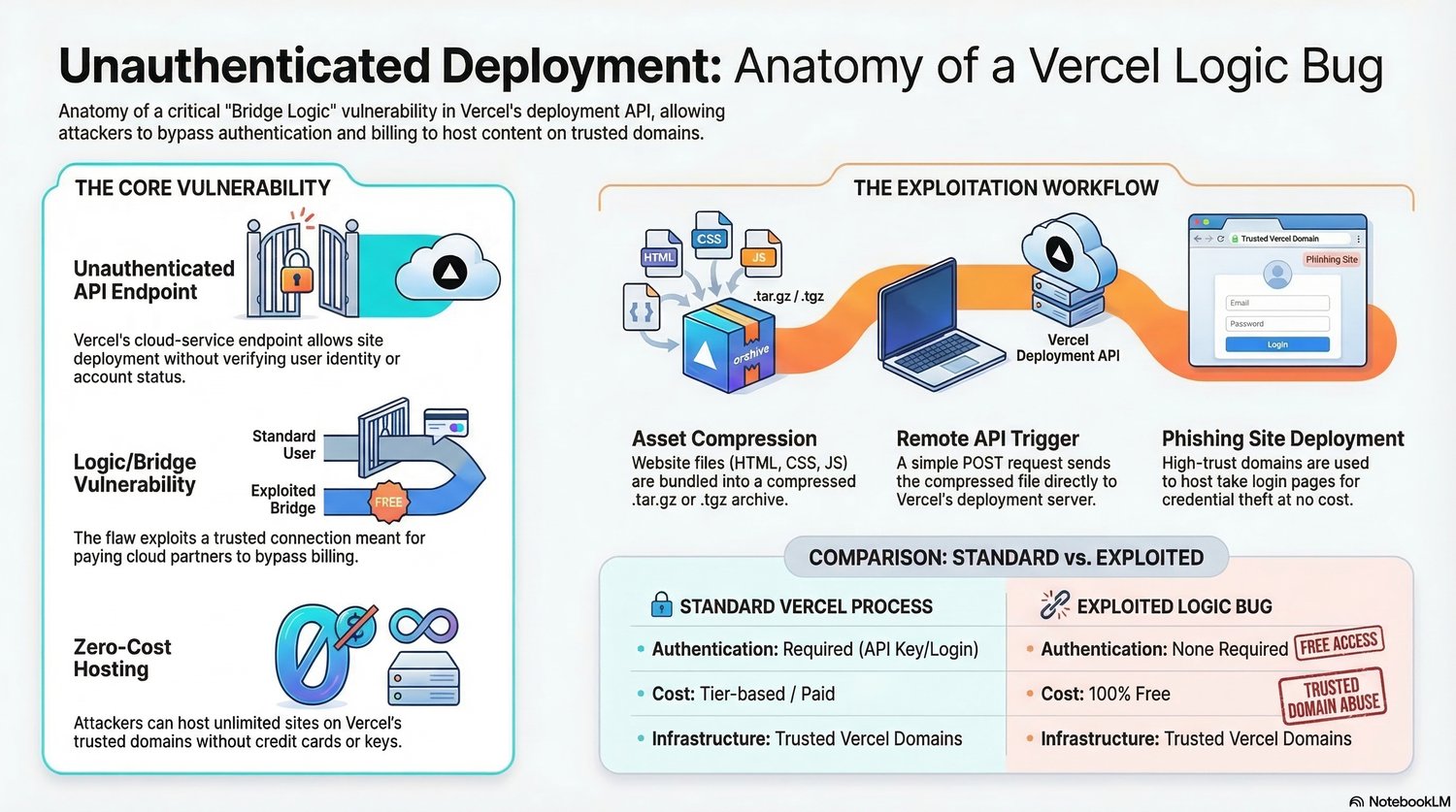Unauthenticated Deployment: Anatomy of a Vercel Logic Bug is an advanced cybersecurity case study that breaks down the anatomy of a critical logic/bridge vulnerability in a cloud deployment pipeline.