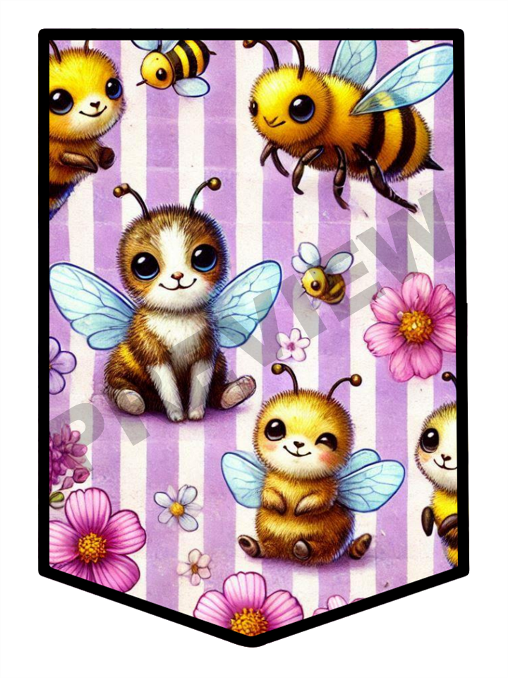 The words in this product read: STAY BZZZY! BEE HAPPY!