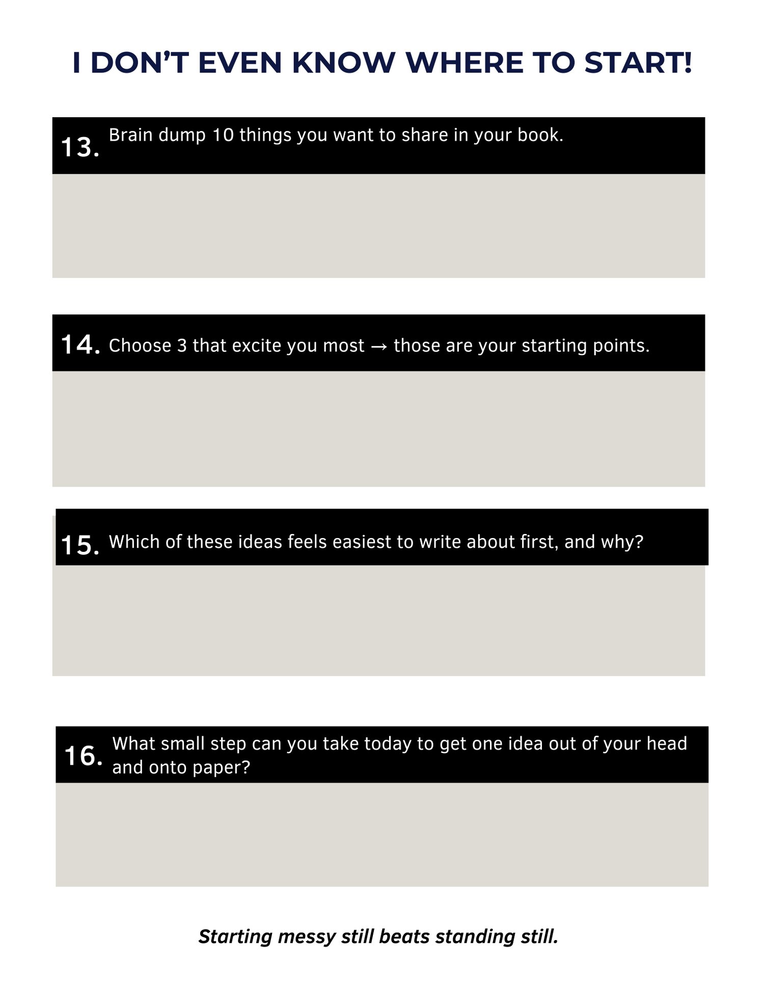 ✔️ Create a starter outline, chapter ideas, and build the confidence to keep going.