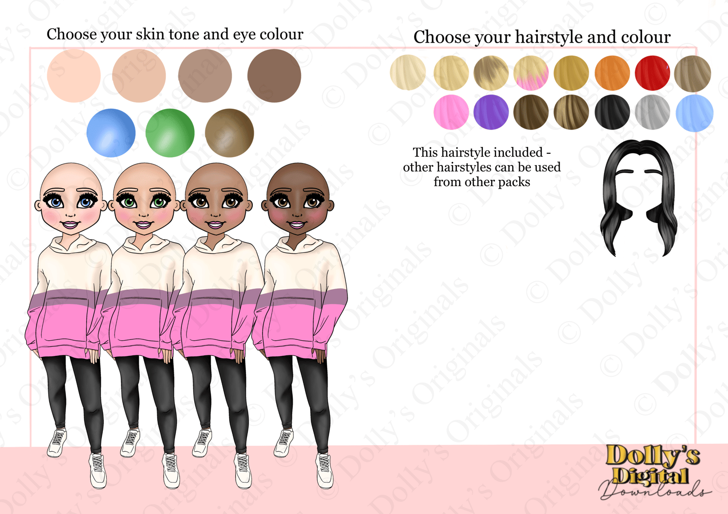 Instant digital download of our Pink Blake Hoody Dolly Character Bundle PNG (28 PNG’s)