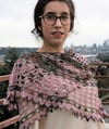 This generously sized crescent-shaped shawl is light and airy thanks to two great Malabrigo Yarns - Lace and Silkpaca. Choose a color combination that speaks to you, and have a go at this shawl with its easy pattern stitch rep and interesting edging. Forge your own graceful gothic/heraldic statement!