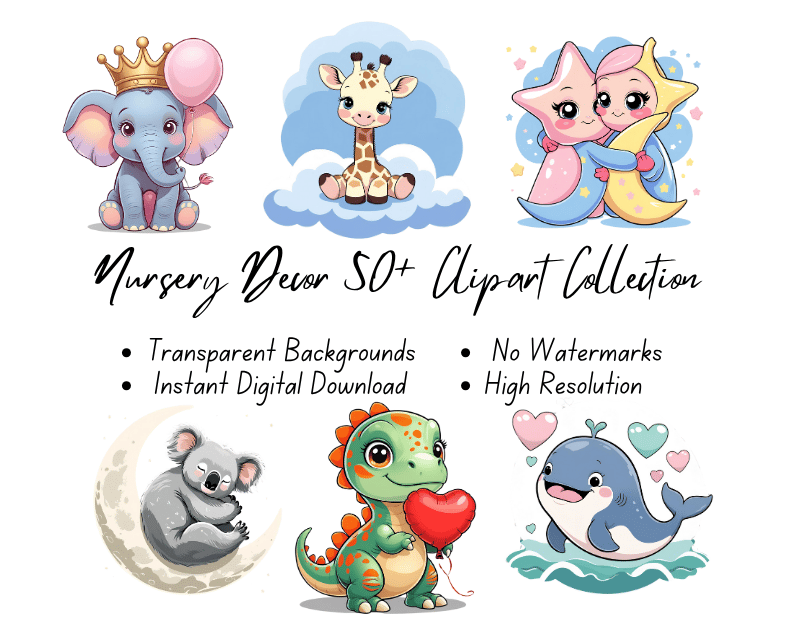 Nursery Decor 50+ Clipart Collection | High-Resolution Digital Printables | Instant Download | No Watermark