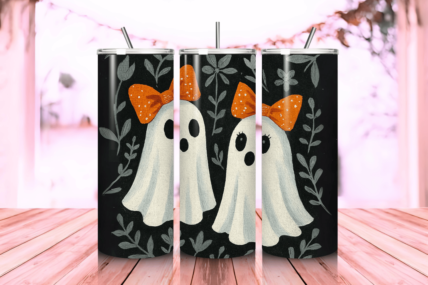 Ghost Halloween Tumbler Wrap PNG – 20oz Skinny Sublimation Design with Spooky Cute Ghost Artwork & Festive Autumn Theme – 300 DPI Instant Digital Download