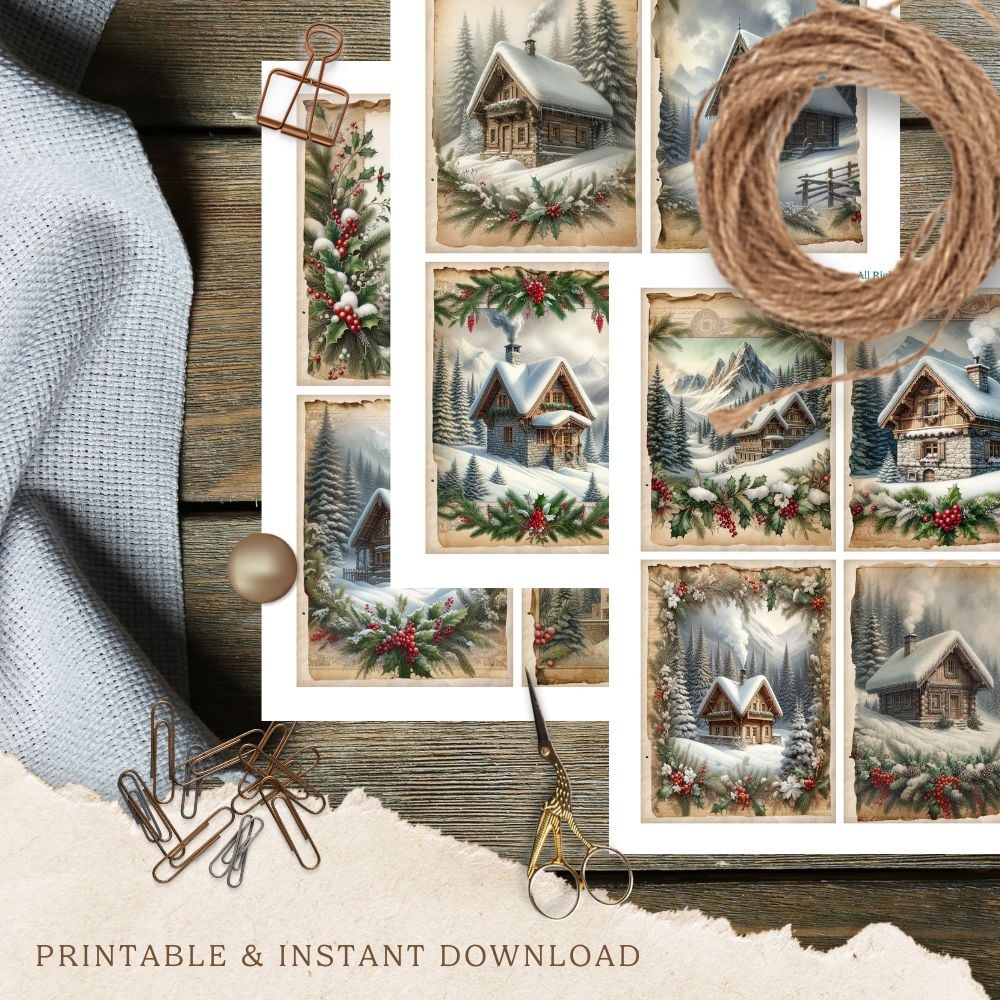 Whether you're preparing holiday journals or selling handmade crafts, these printable Christmas cottage pages add warmth, whimsy, and timeless beauty to every creation. Instant download — start crafting today!