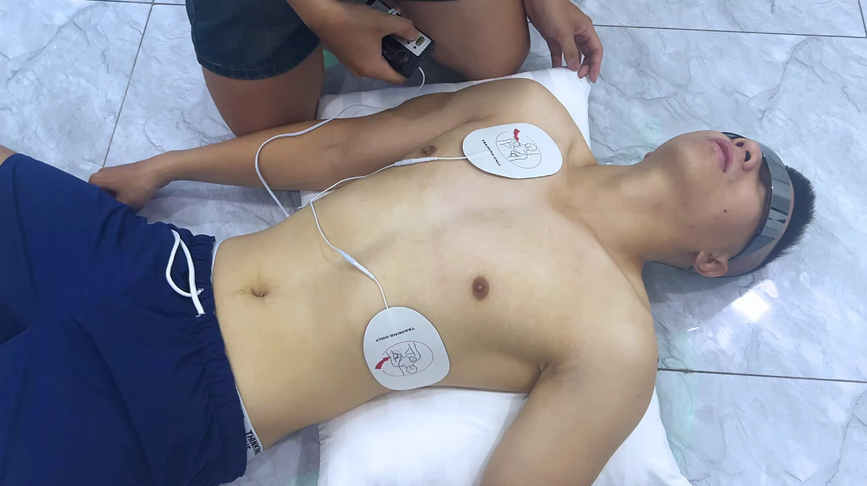 Collapsed and unresponsive, FānXiào is moments away from losing consciousness… until help arrives. His friend TíngHuī finds him lifeless on the floor and immediately jumps into action. With swift CPR and the aid of a defibrillator, he fights to bring FānXiào back. The tension rises as every second counts.